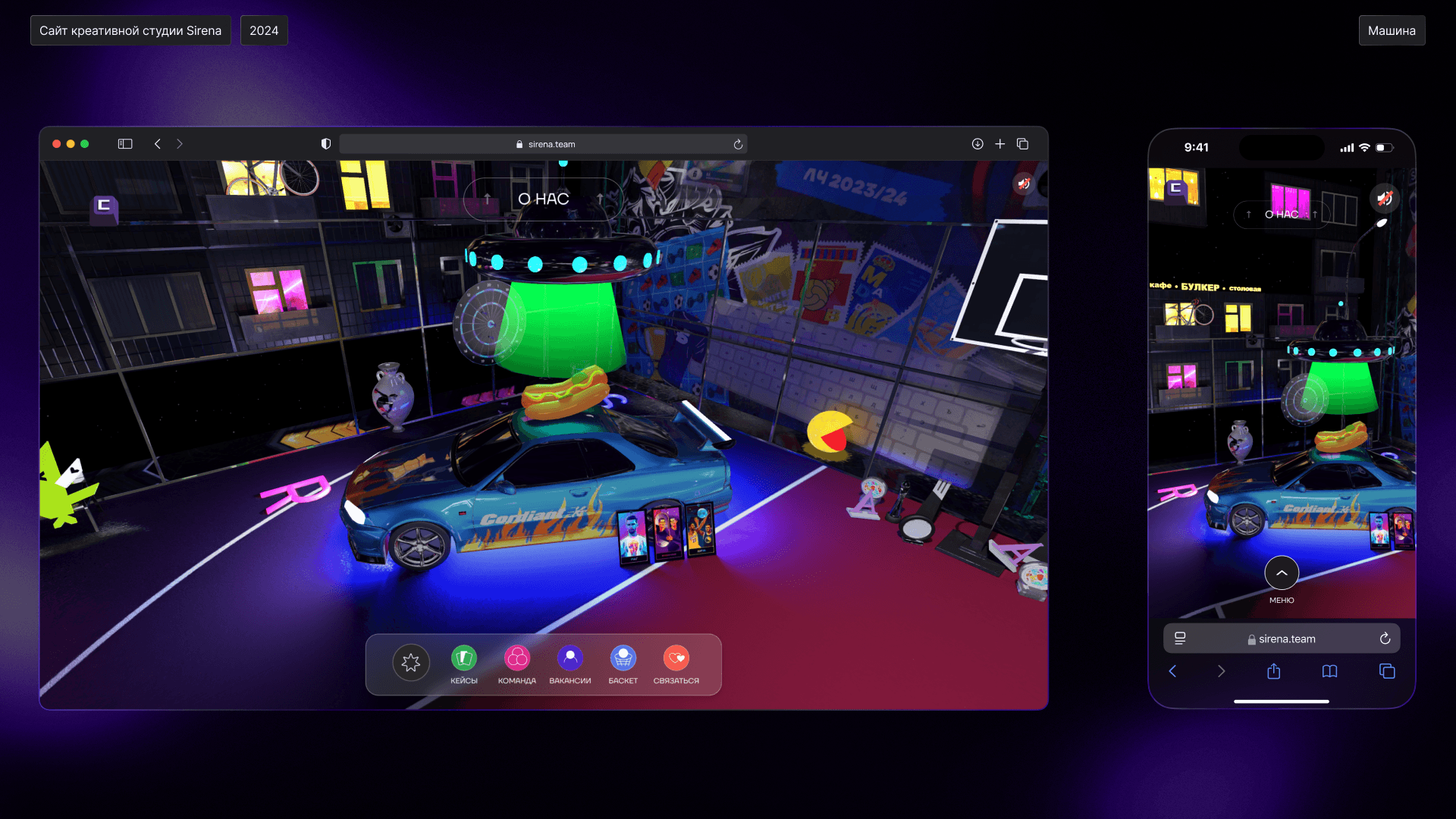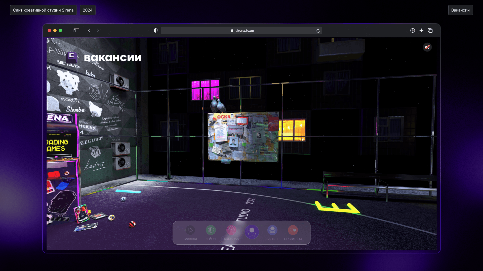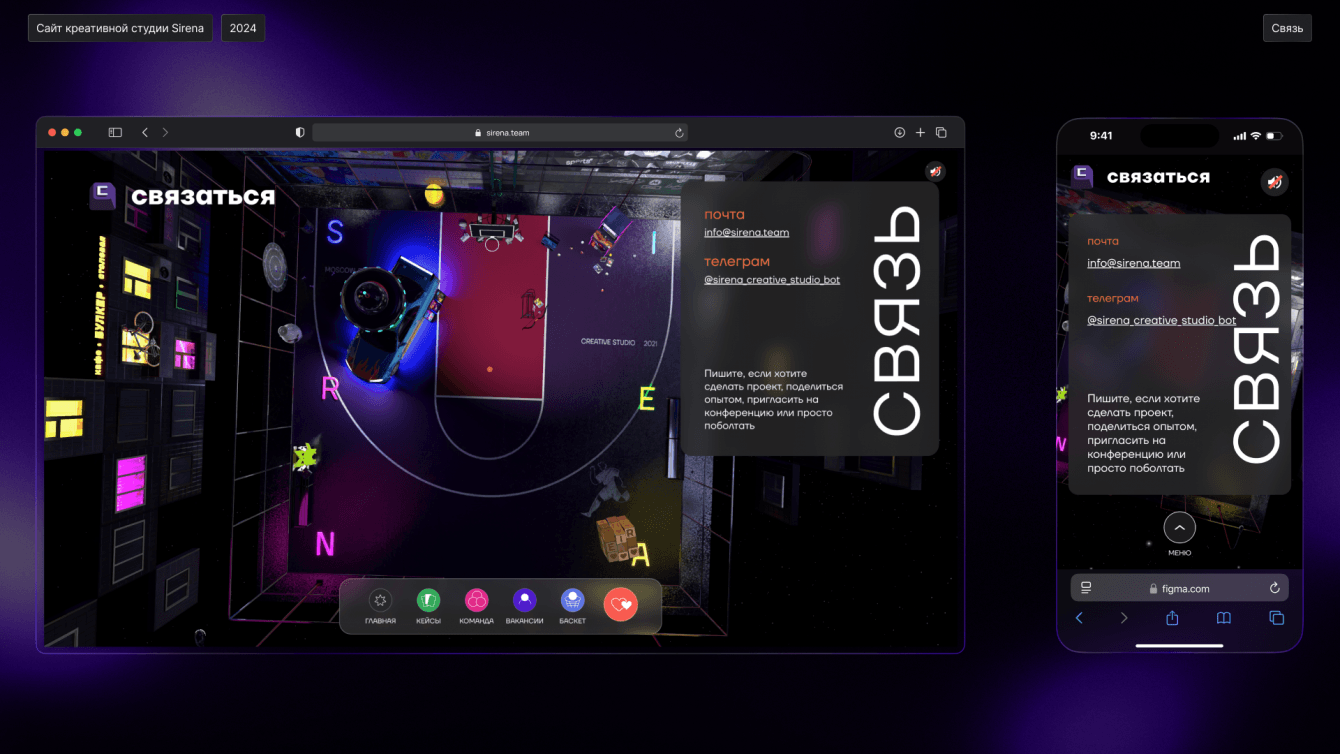 Все наполнение сайта – история студии с разными отсылками. В основе концепции – дворовая коробка, на которой многие из нас рубились в детстве. Pac-Man – первый проект студии. «Булкер» – кафешка рядом с прошлым офисом. На стене – граффити из проектов. Практически все на новом сайте Сирены скрывает отсылку к нам и нашей работе.