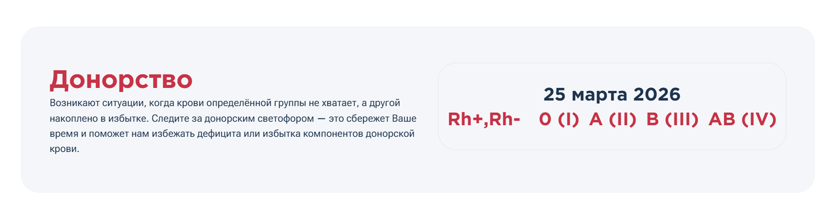 А этот блок на главной странице сайта помог закрывать потребности по донорским материалам в период COVID.