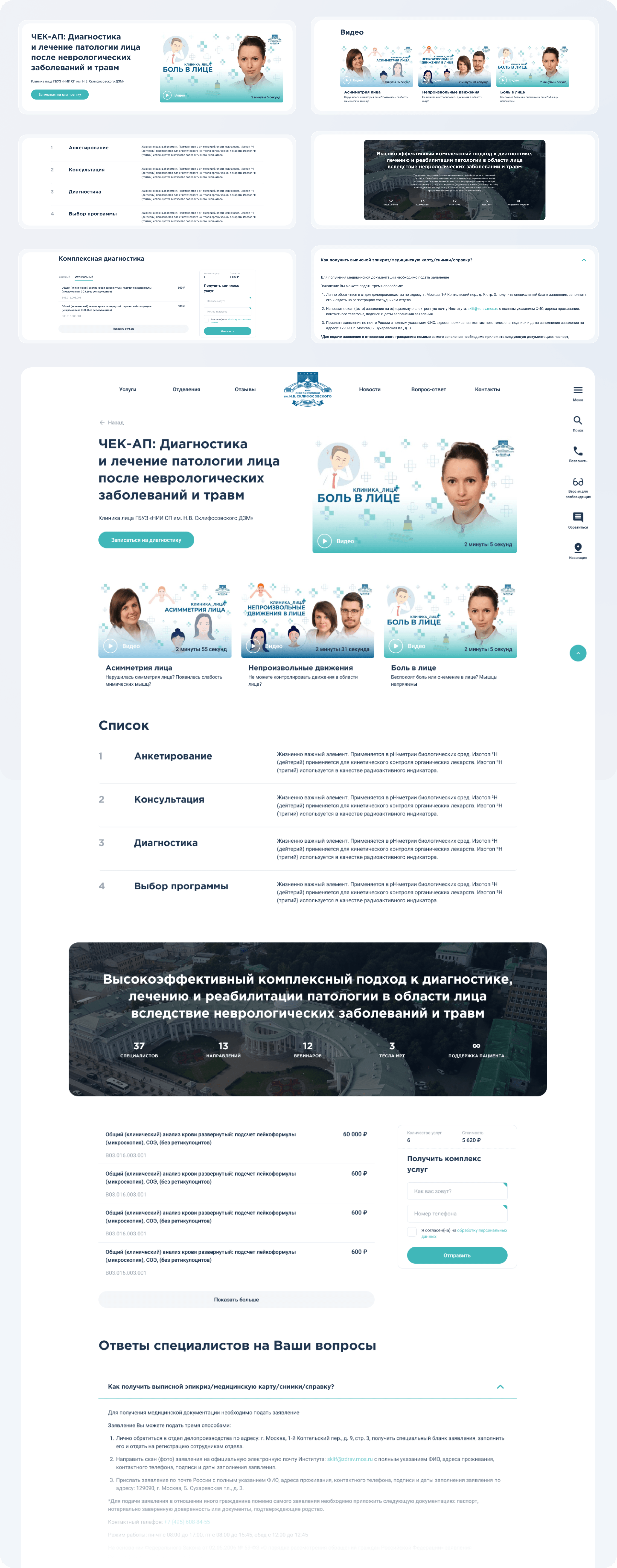 • разделы и промо‑лендинги для чекапов и коммерческих программ;
