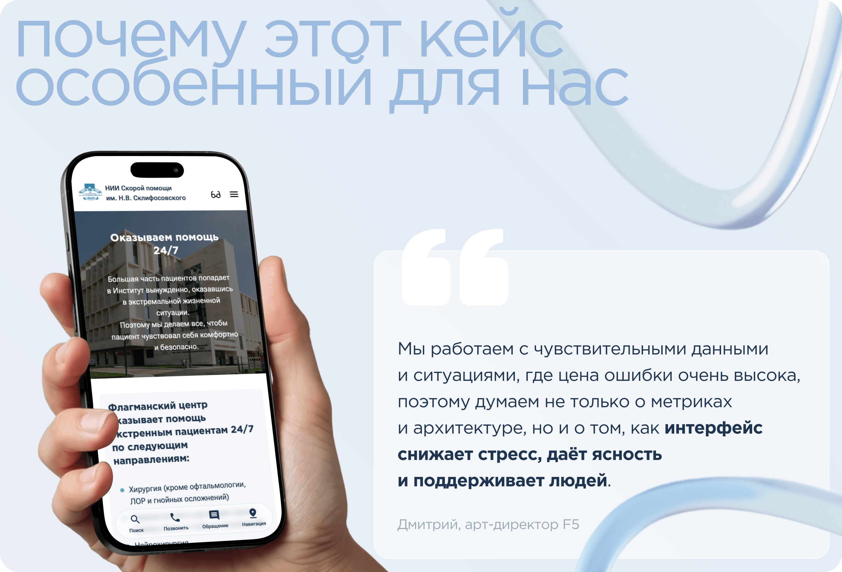 Через цифровой Склиф проходят люди в очень разные моменты жизни: от срочной госпитализации и ожоговой травмы до донорства и поступления в ординатуру. Это инфраструктура, которая должна работать без сбоев и помогать, когда человеку особенно нужна опора.