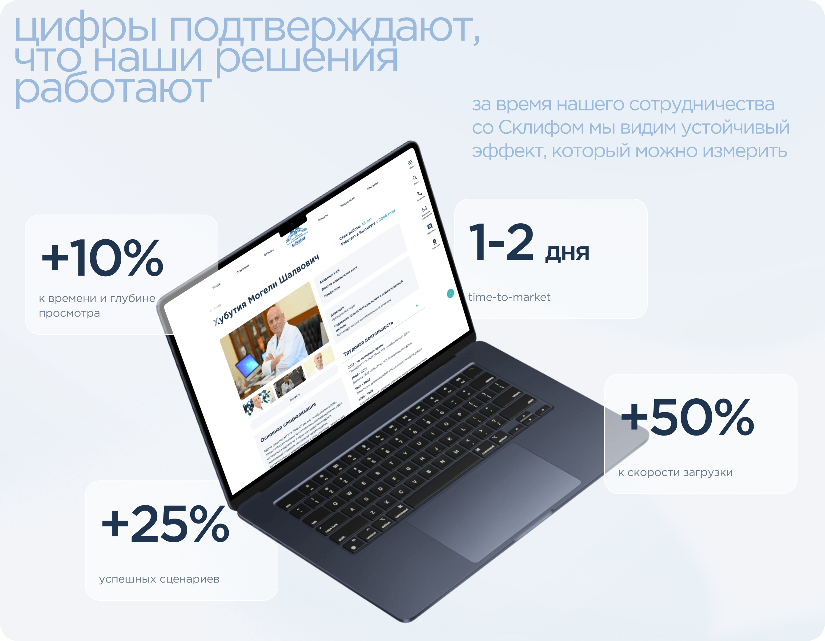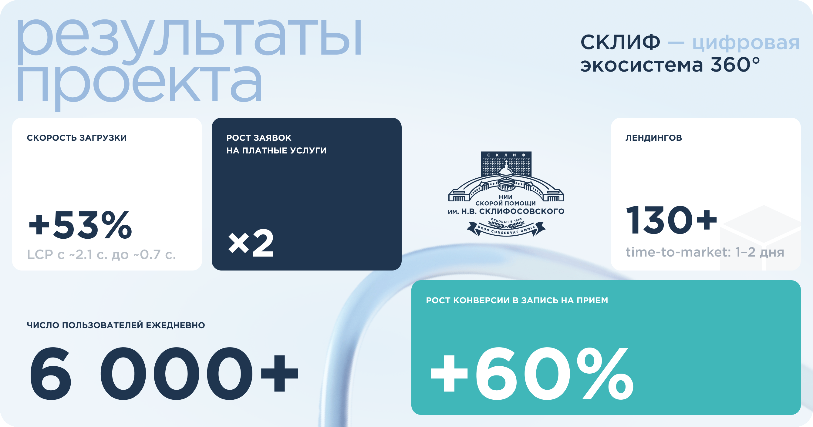 Сайт и инструменты НИИ стали отраслевым ориентиром. Решения Склифа берут за основу и повторяют другие НМИЦ и НИИ — мы убедились, что нашли рабочий подход к задачам такого уровня.