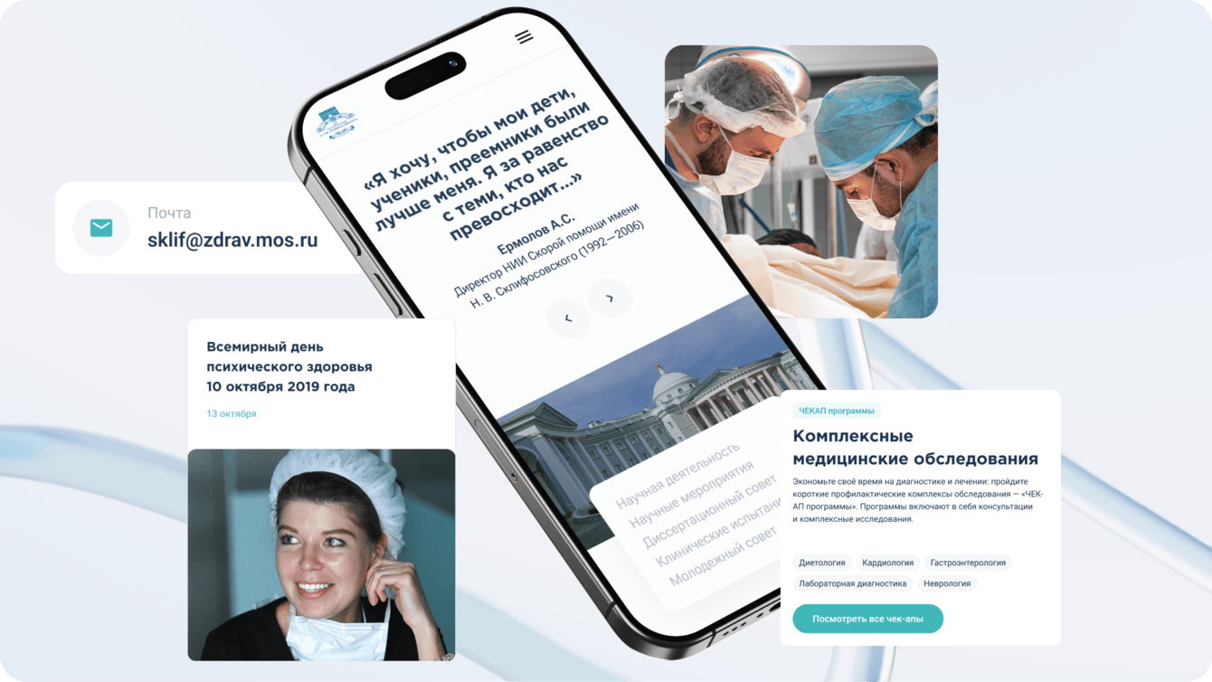 Для Склифа сайт — не формальная «витрина», а живой рабочий инструмент. Через него проходят задачи от донорства и чекапов до конференций и приёма абитуриентов.