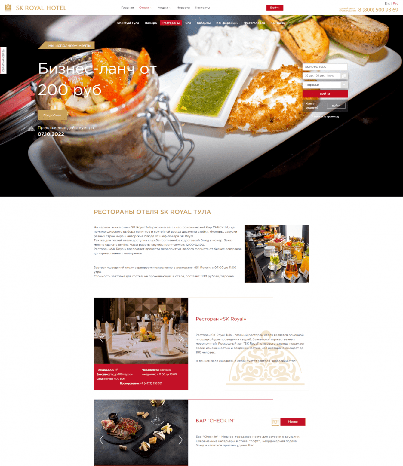 На скриншоте: Одна из страниц после интеграции разработанного дизайна "Рестораны"