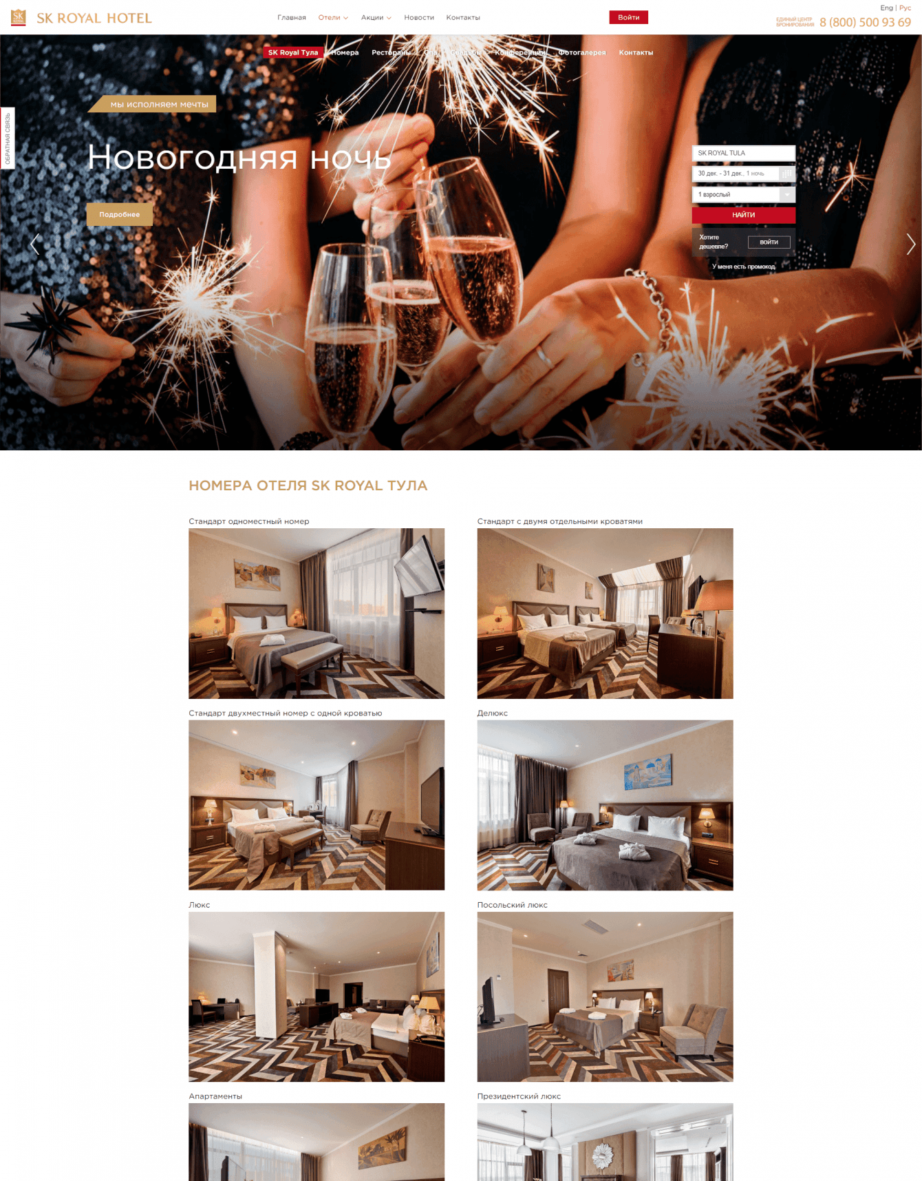 На скриншоте: Одна из страниц после интеграции дизайна "Главная отеля"