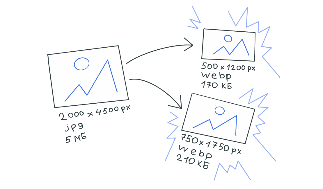 В некоторых случаях генерируется до 24 вариантов исходного изображения для оптимального вывода на разных устройствах, в том числе используется конвертация картинок в формат webp.