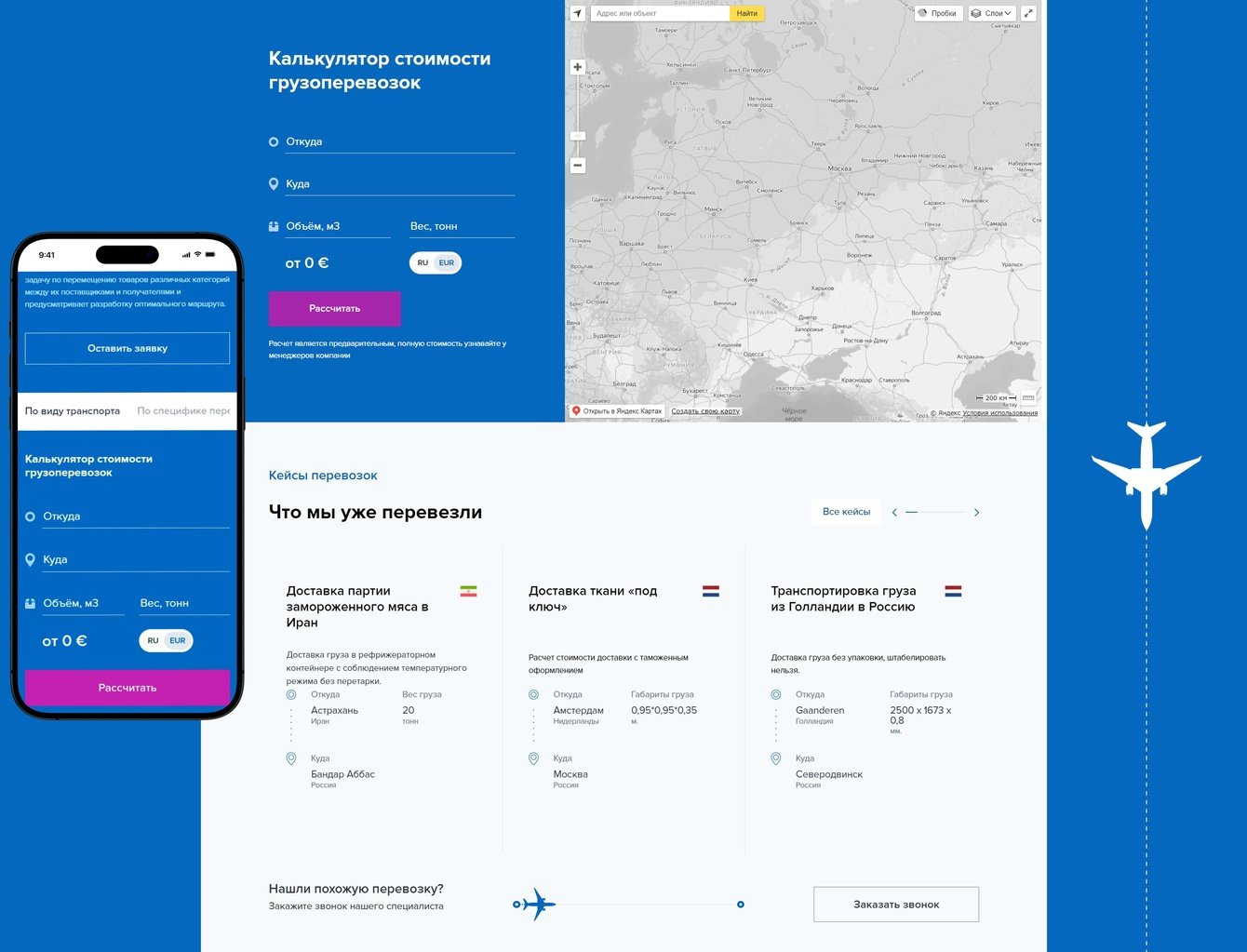 Добавлен интерактивный калькулятор стоимости перевозок, который помогает пользователю быстро рассчитать стоимость услуги.