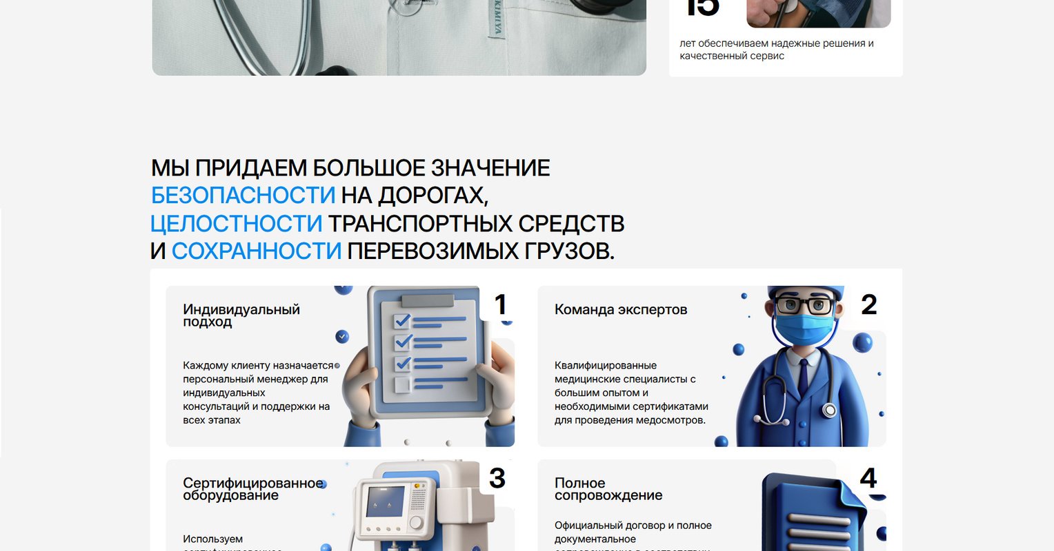 Мы реализовали сайт с полной адаптивностью и кроссбраузерностью, точно по макету дизайна. Интегрировали верстку с CMS Bitrix, настроили модули и компоненты для корректной работы всех блоков, подключили email-сервер для форм обратной связи. Провели SEO-оптимизацию, проверку HTML по W3C и ускорили загрузку страниц. В итоге клиент получил современный, удобный в управлении и полностью соответствующий требованиям бизнес-сайт.
