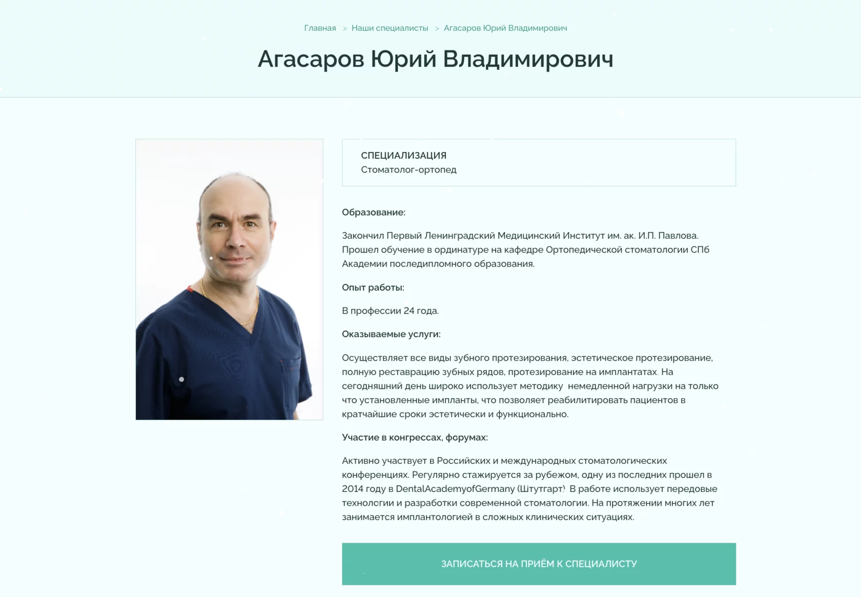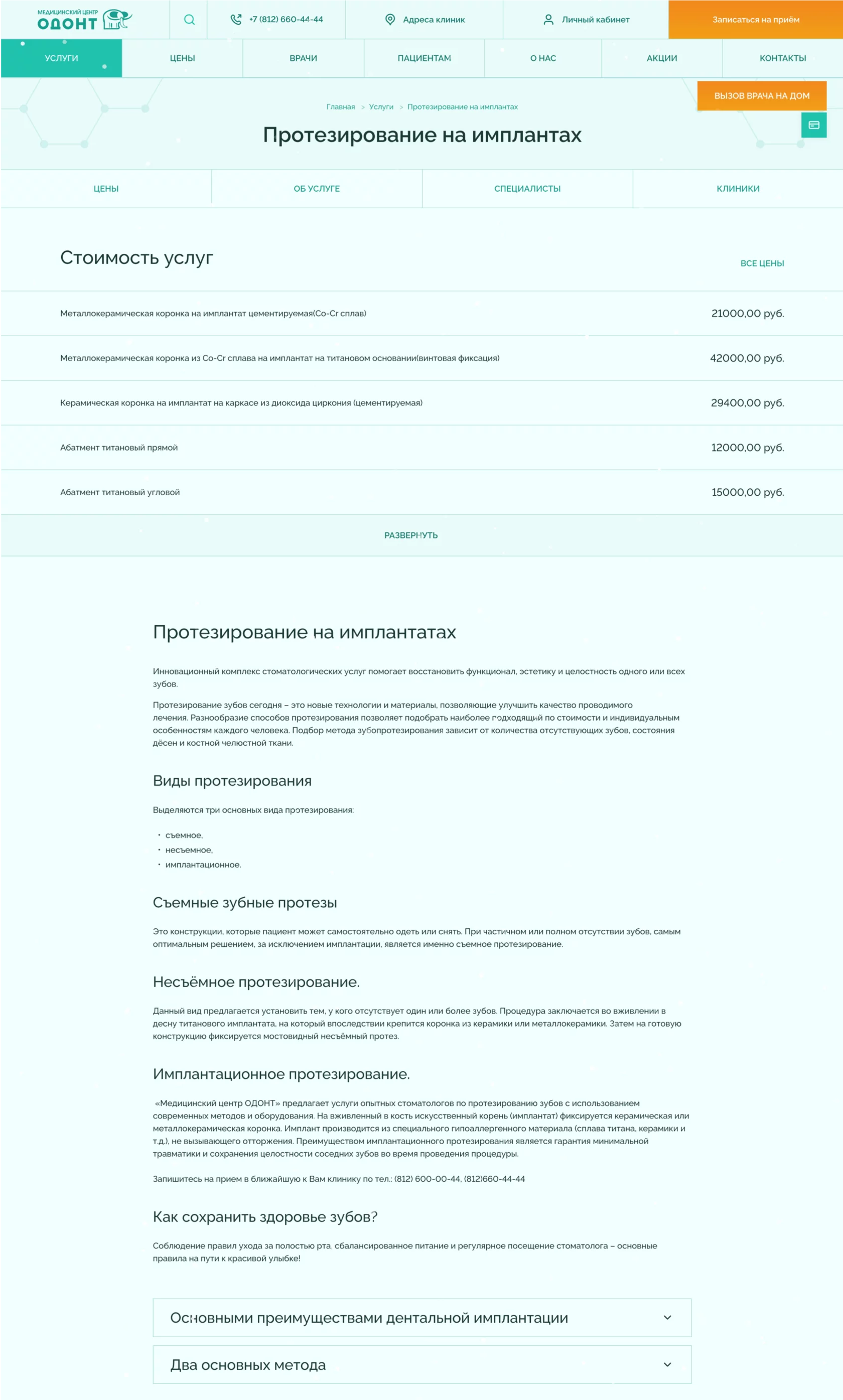 Перенесли сайт с данными старого сайта с WordPress на 1C-Битрикс. Получилось много новых макетов страниц и переработанных компонентов, которые мы интегрировали на сайт. Например услуги, цены, врачи и адреса клиник взаимосвязаны между собой и потребовали дополнительных трудозатрат при наполнении. Также была интегрирована возможность оплаты некоторых ключевых услуг прямо на сайте. При разработке учитывали безопасность и скорость работы решения.