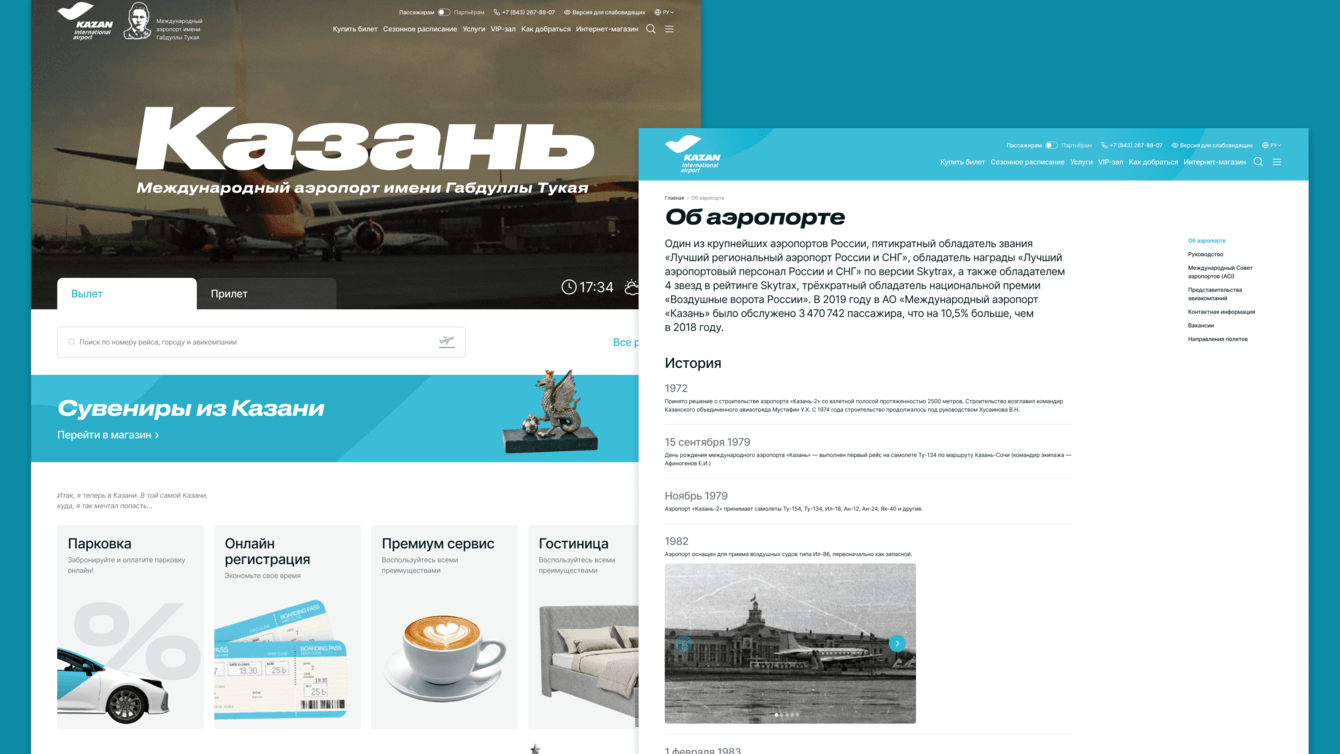 Запустили новый сайт для Международного аэропорта «Казань». Результатом длительной и кропотливой работы стал технически сложный и одновременно лаконичный веб-проект с современным дизайном.