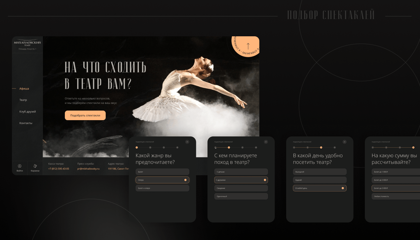 Михайловский театр является культурным центром и имеет свою публику, поэтому мы учитывали вкусы и предпочтения аудитории при разработке дизайн-концепции.