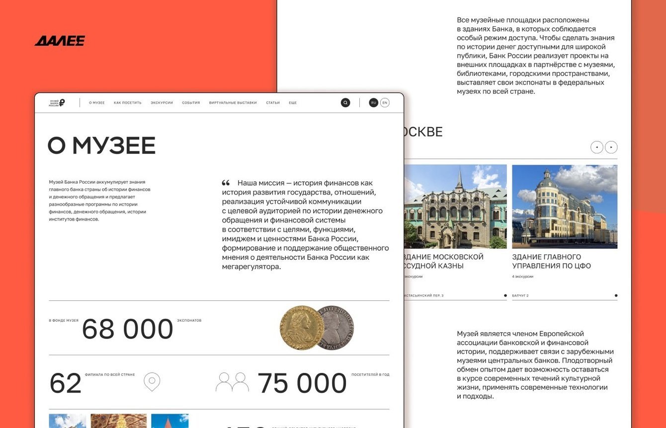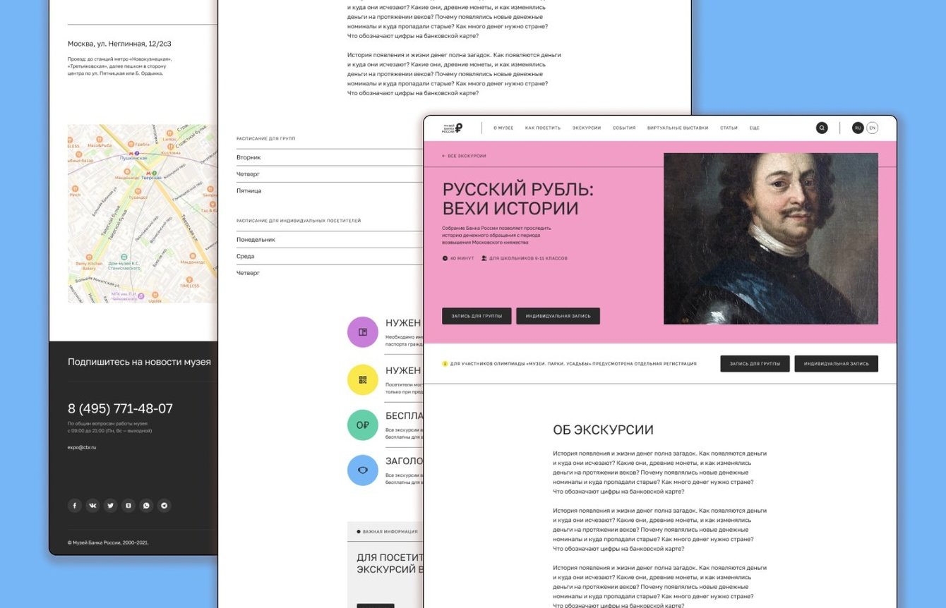 - Создать сайт с современным дизайном для популяризации музея Банка России и повышения знаний аудитории об истории финансов — отечественной и мировой. В качестве референсов выбрали крупнейшие культурные институции с развитыми диджитал-каналами.