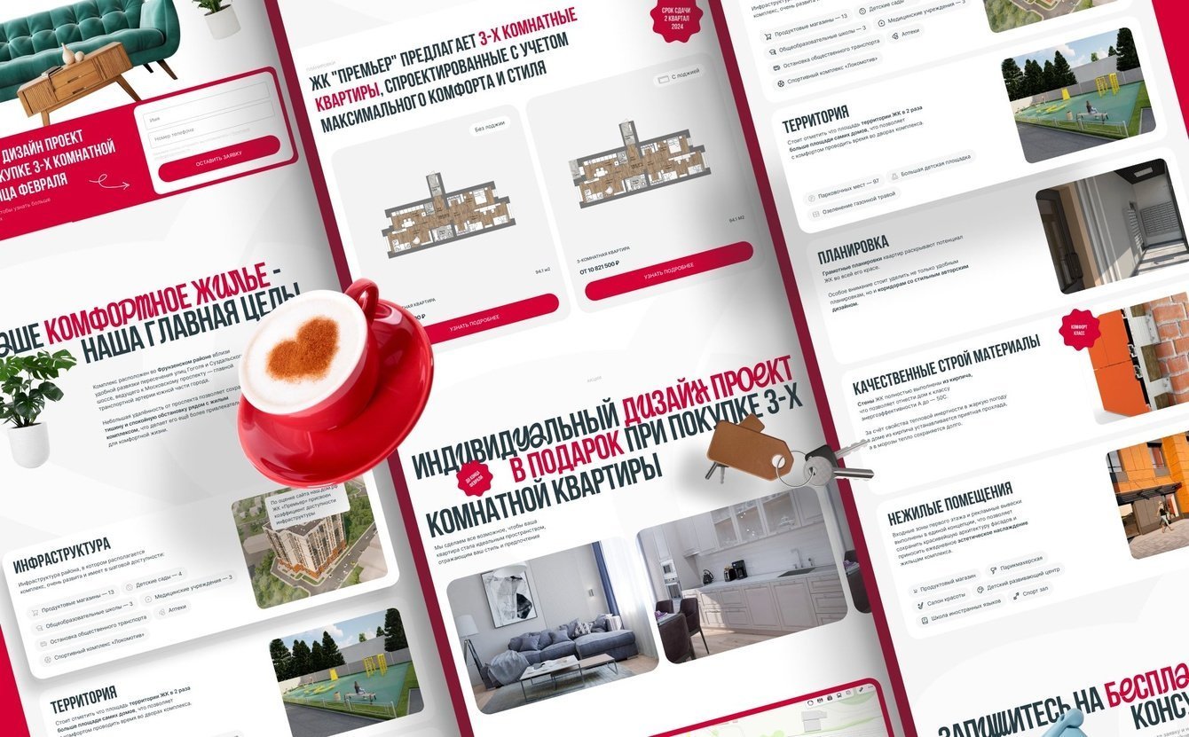 Мы разработали лендинг на платформе Tilda для жилого комплекса «Премьер» в Ярославле, чтобы увеличить продажи трёхкомнатных квартир. Провели анализ целевой аудитории и конкурентов, выявив причины низкого спроса. Создали структуру сайта, где каждый раздел последовательно раскрывает преимущества квартир, учитывая потребности клиентов. Дизайн дополнили декоративными элементами, символизирующими домашний уют, и обеспечили адаптивность для мобильных устройств. Проект реализован за две недели, включая запуск рекламной кампании, что позволило оперативно привлечь внимание потенциальных покупателей.