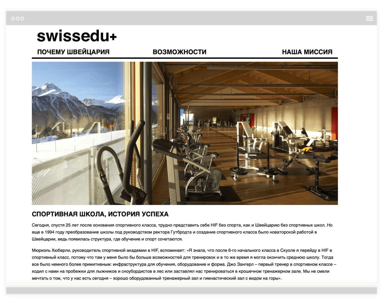 Swissedu+ предоставляет образовательные услуги в Швейцарии во всем их многообразии от консультации до организации процесса поступления в вузы. Необходимо было быстро сделать простой и быстрый веб-сайт для участия в выставке.
