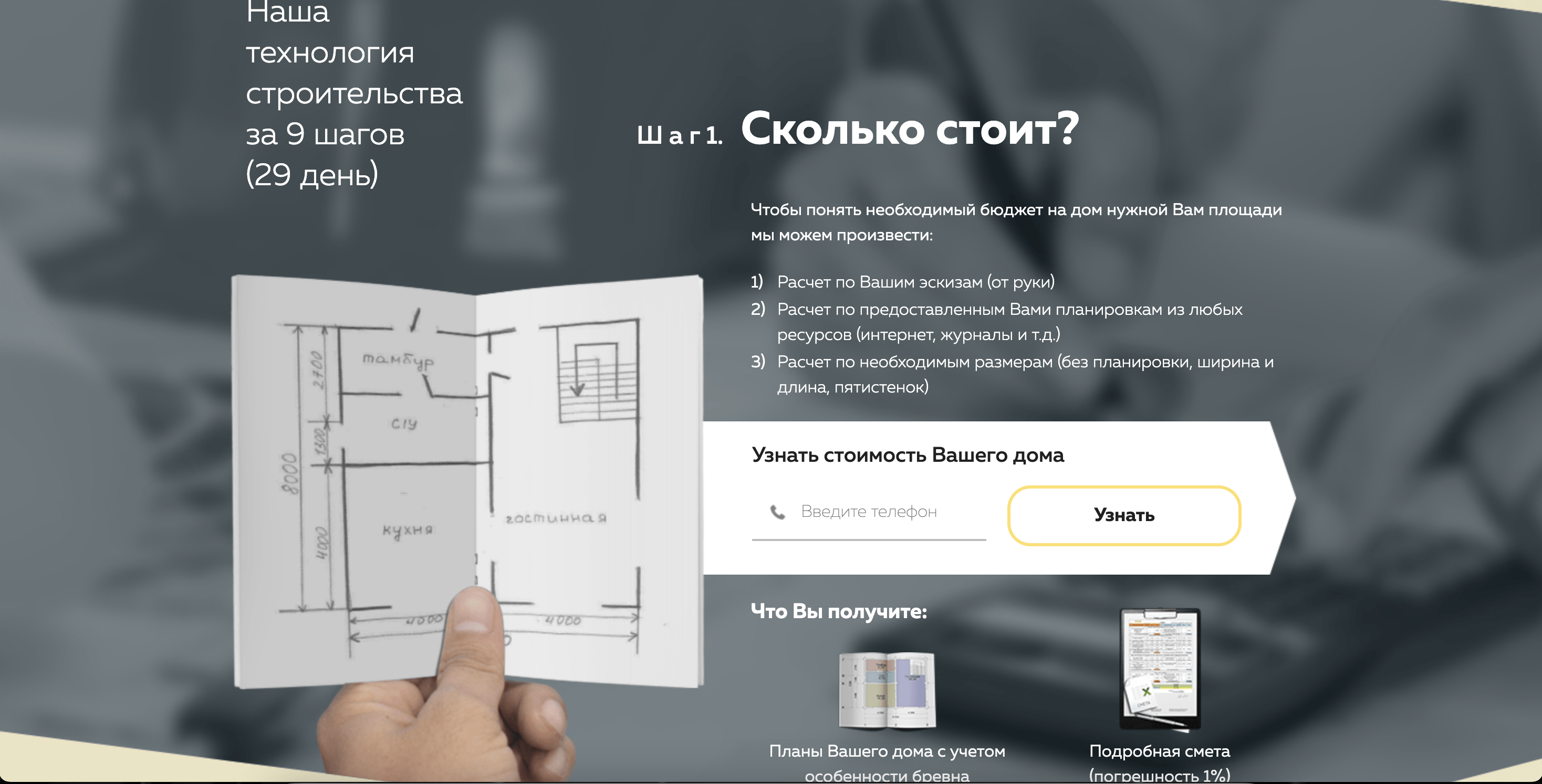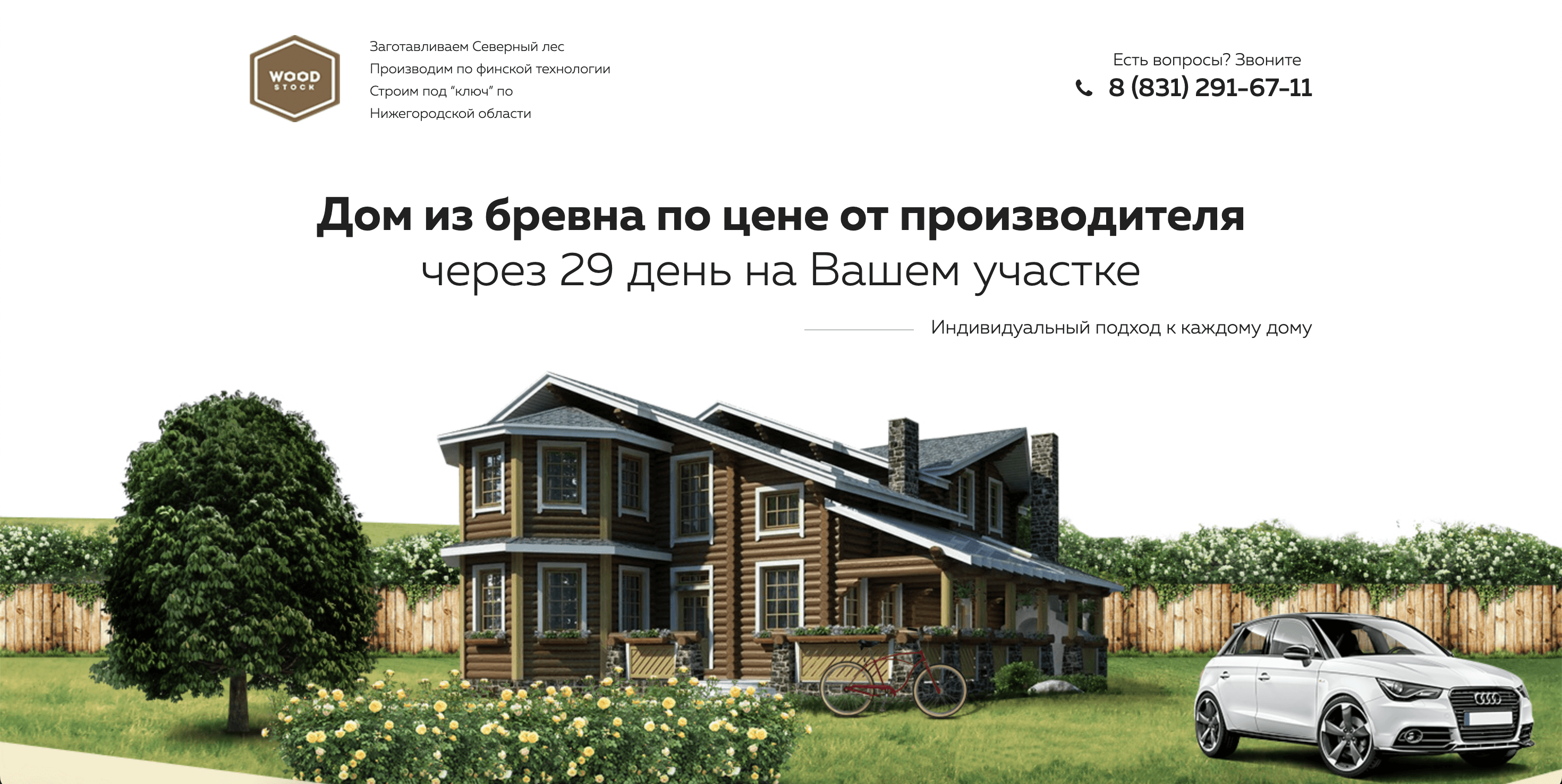 Создать современный сайт с акцентом на качество и эстетику деревянного строительства.