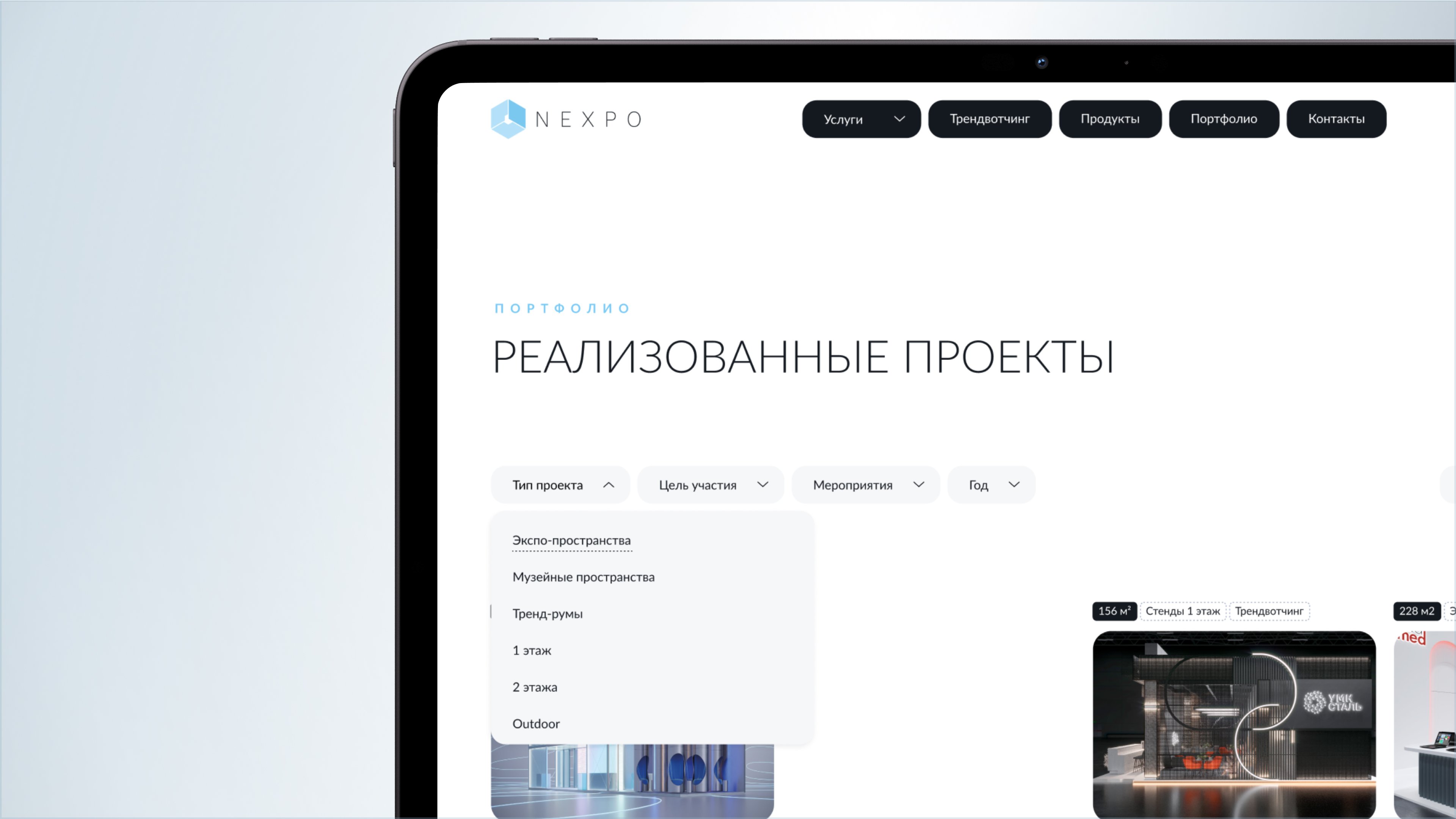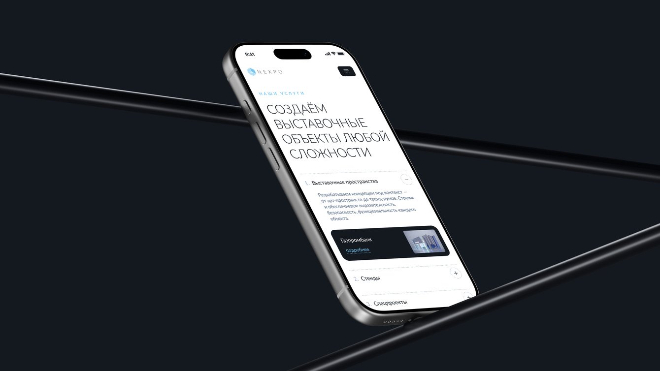 В проекте NEXPO нашей главной победой стала именно упаковка смыслов на сайте, а не просто технический запуск. Клиент занимается не стандартной застройкой, а глубокой предварительной аналитикой, создавая арт-пространства, которые помогают их клиентом задавать тренды на рынке через креативную идею, что для целевой аудитории NEXPO звучало достаточно сложно.
