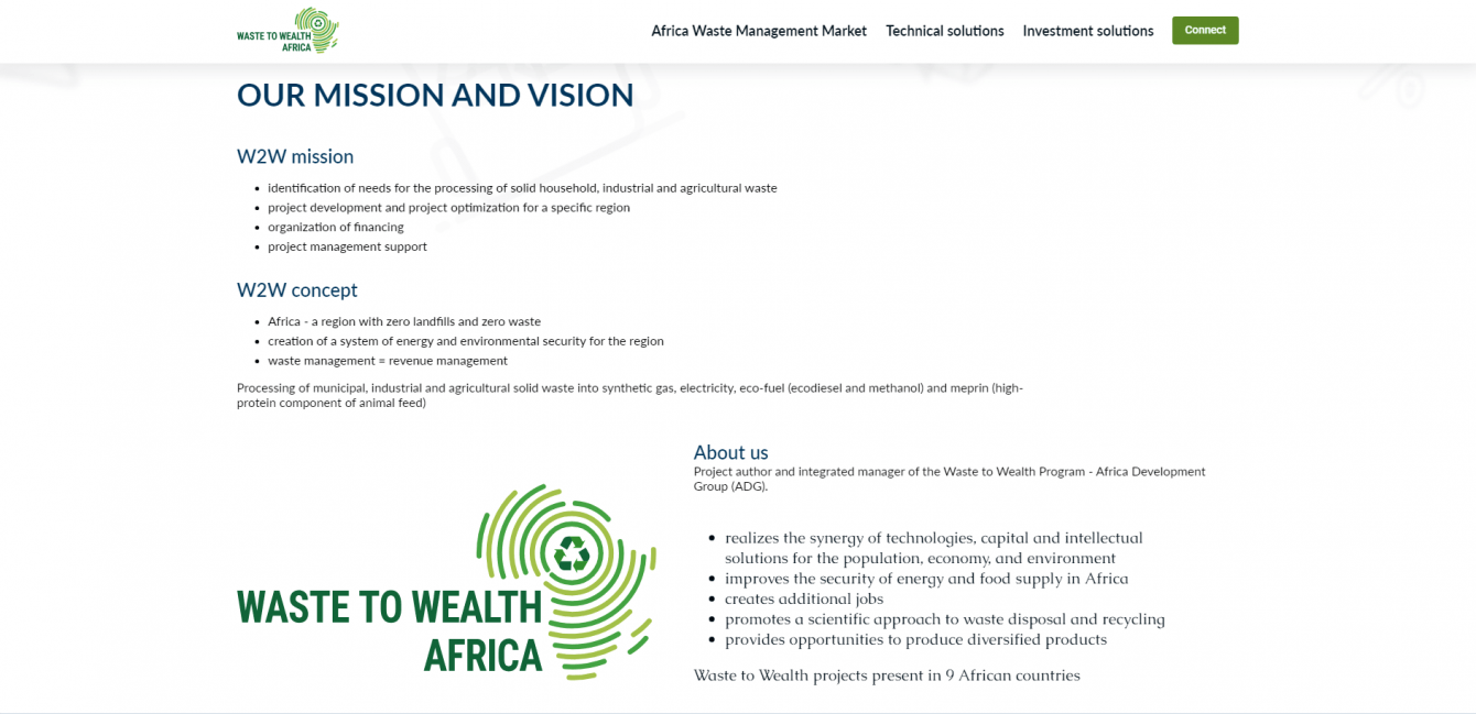 Cоздать сайт на основе реальных данных, которые передадут суть, задачи и цели новой технологии по переработке мусора. Цель – рассказать об уникальности технологии и подтолкнуть пользователя инвестировать в эту отрасль