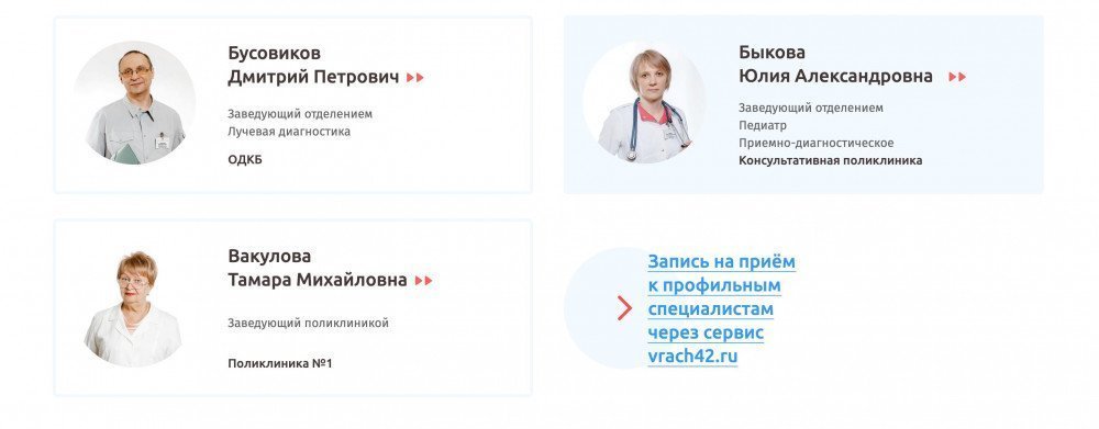 Страницы разрабатывали по принципу шаблона, чтобы в будущем представители больницы могли сами их конструировать из блоков. Сразу продумывали какие блоки будут обязательны для каждого типа страниц, а какие будут варьироваться в зависимости от наличия информации.