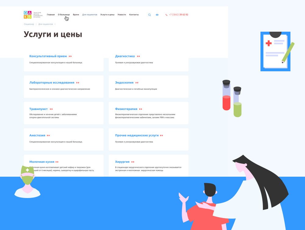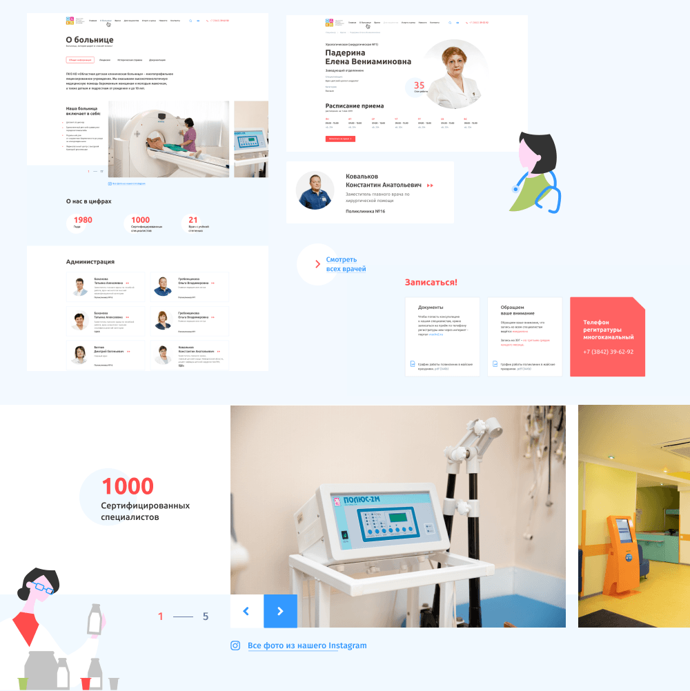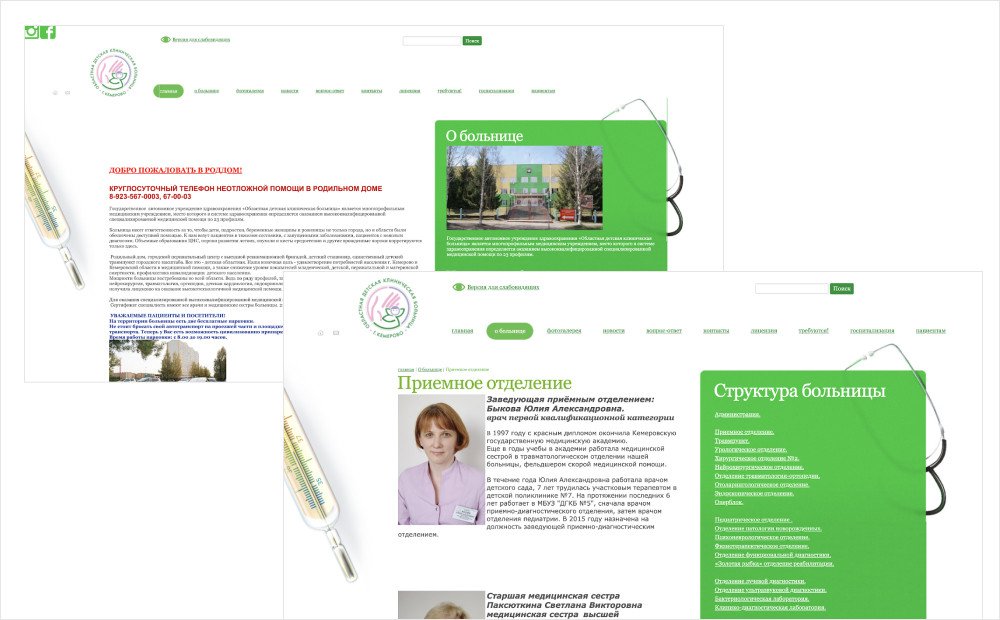 В результате заказчик получил имиджевый сайт больницы, который презентует медучреждение в целом и все его структурные подразделения:
