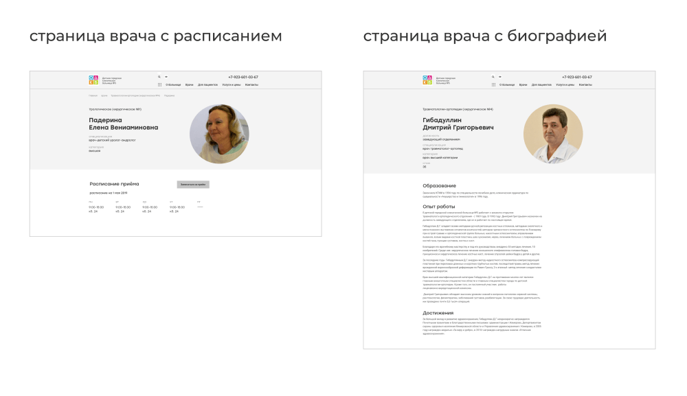 Внутренние страницы сайта дают пользователям информацию по интересующим вопросам: о конкретных врачах, услугах или направлениях деятельности больницы.