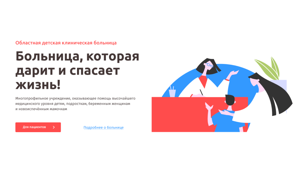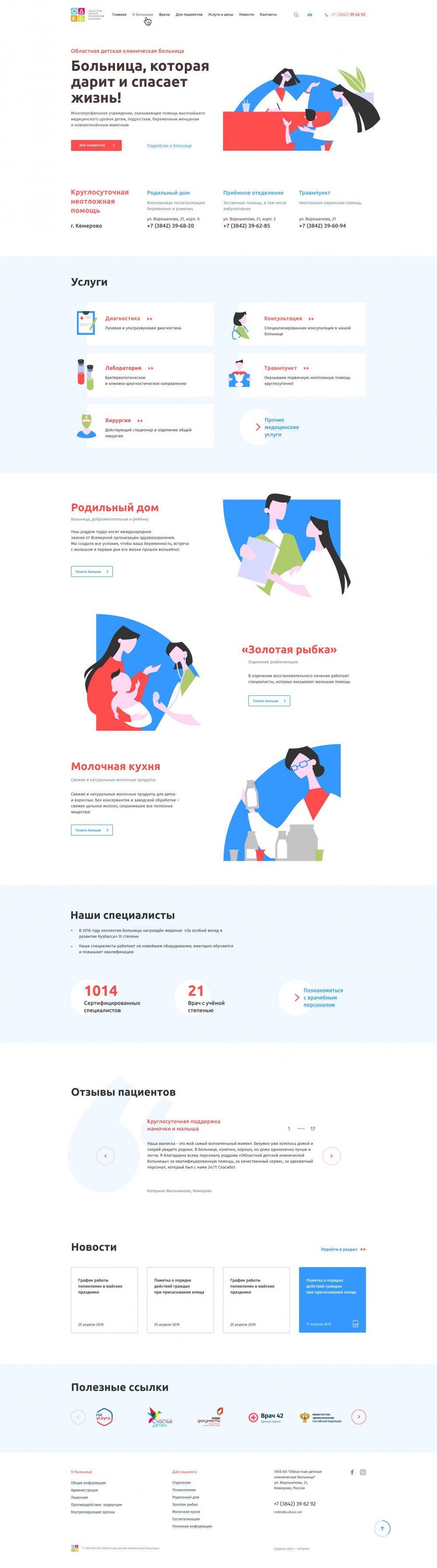 Детская областная многопрофильная больница объединяет в себе несколько больниц и поликлиник города, родильный дом, центр реабилитации. Для родильного дома этой больницы мы ранее разработали отдельный сайт.
