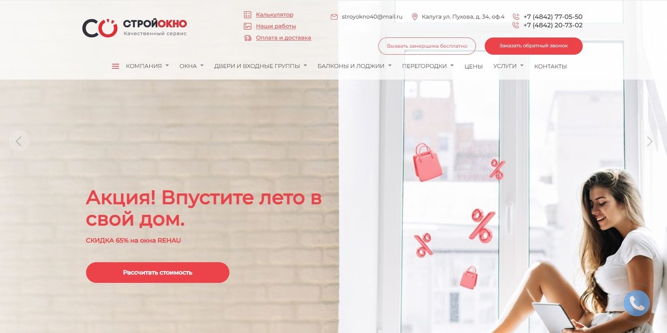 В 2020 году к нам обратился клиент - дилер завода “Окна Rehau” в Калуге. Компания работает как с частными клиентами, так и со строительными организациями и застройщиками, предлагая пластиковые окна и двери по конкурентным ценам. Клиент уже имел сайт, но он его не устраивал из-за устаревшего функционала и неудобного администрирования. Для ребрендинга компании требовалась разработка фирменного стиля, создание сайта и запуск рекламы.