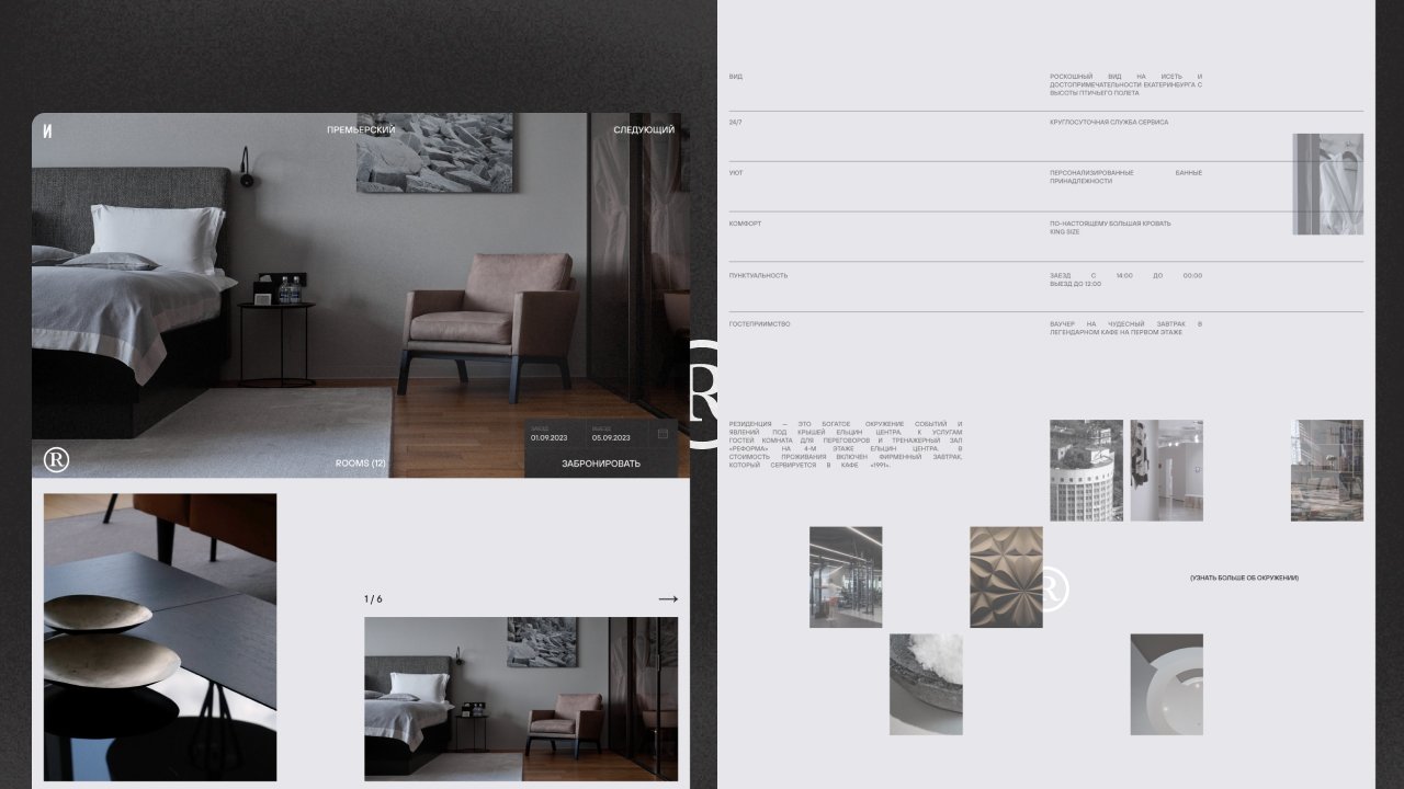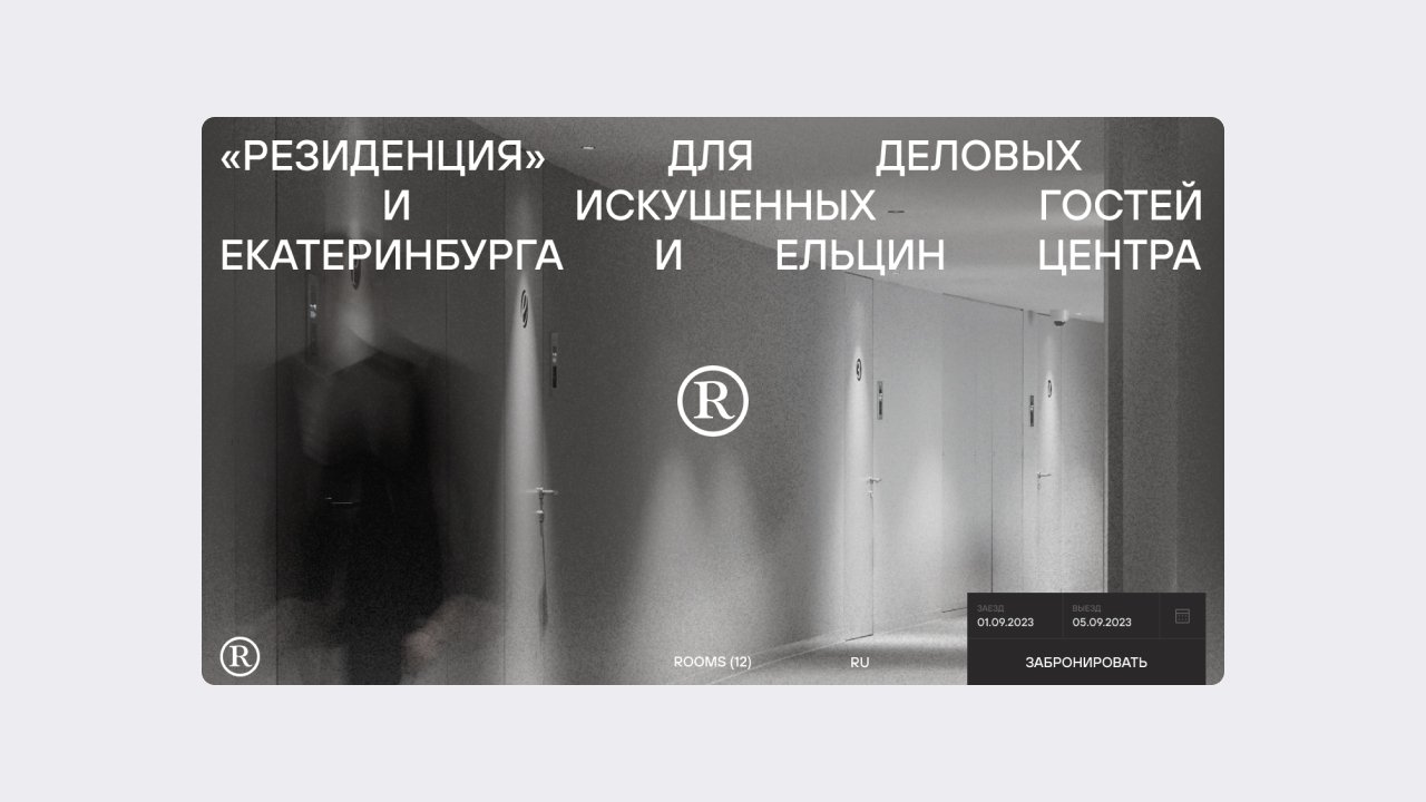 Создать сайт отеля «Резиденция». Отель является частью экосистемы Ельцин Центра: важно было сохранить эту связь, в то же время выделив «Резиденцию» как самостоятельный бренд.