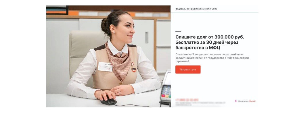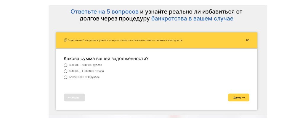 Вот квиз по банкротству МФЦ, который клиент использовал ранее:
