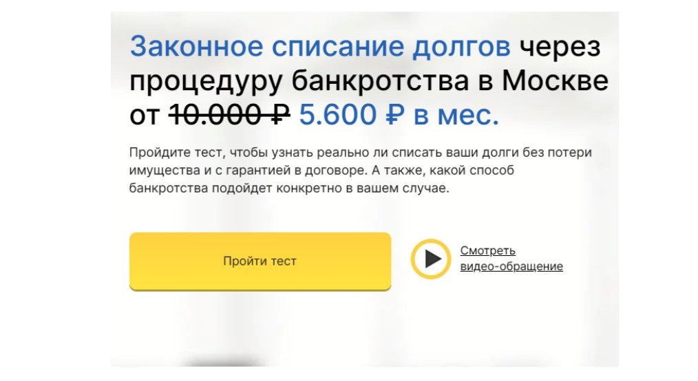 3. Тестировать новые подходы и посадочные страницы. Одна из гипотез — протестировать лонгрид с кейсом-историей по банкротству одного из клиентов.