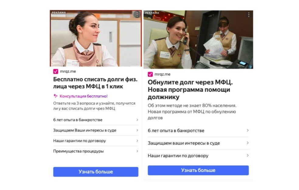 Когда лендинг был готов, мы протестировали МК и РСЯ с различными методами таргетинга. Вот примеры креативов по этому сегменту: