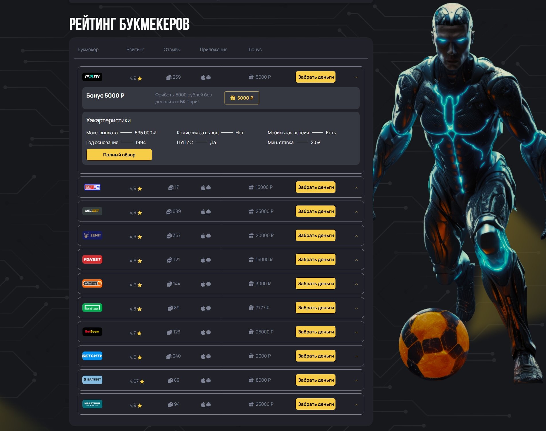 Сайт получился динамичным и технологичным — идеально под формат спортивной аналитики