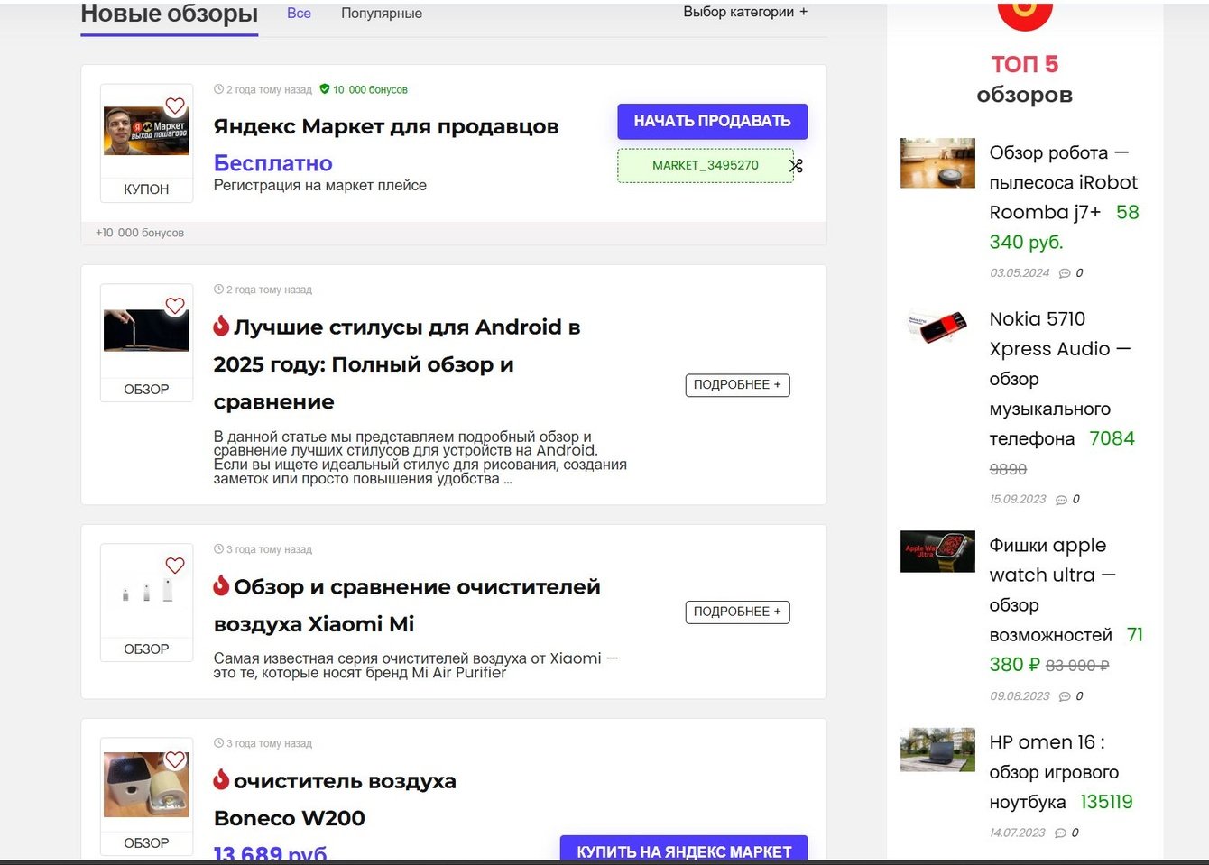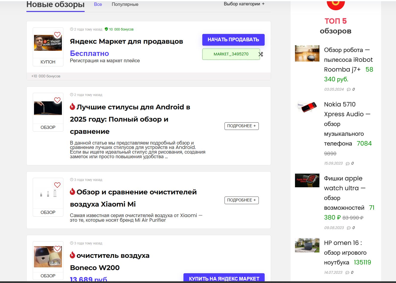 Добавлены статьи, написаны совместно с копирайтером, добавлены товарные блоки, которые ведут на покупку в яндекс маркет, алиэкспресс.
