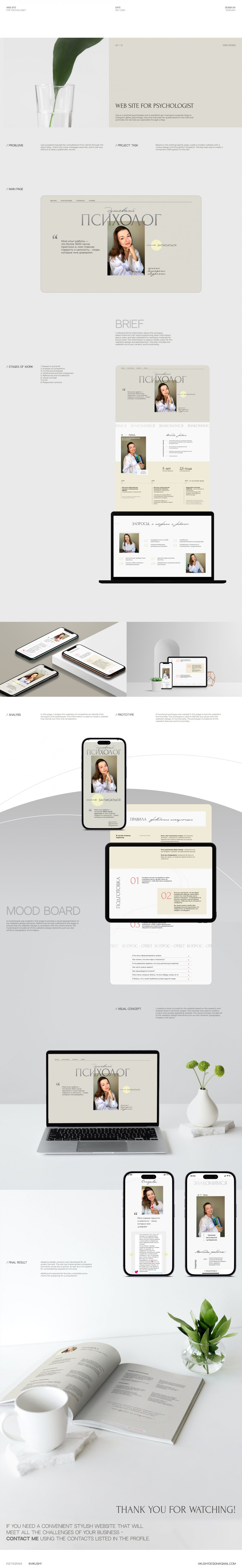 Результат: Современный сайт, отражающий личность психолога и подход к работе; автоматизированная система приема заявок на услугу - вместо мессенджеров и direct вручную.
