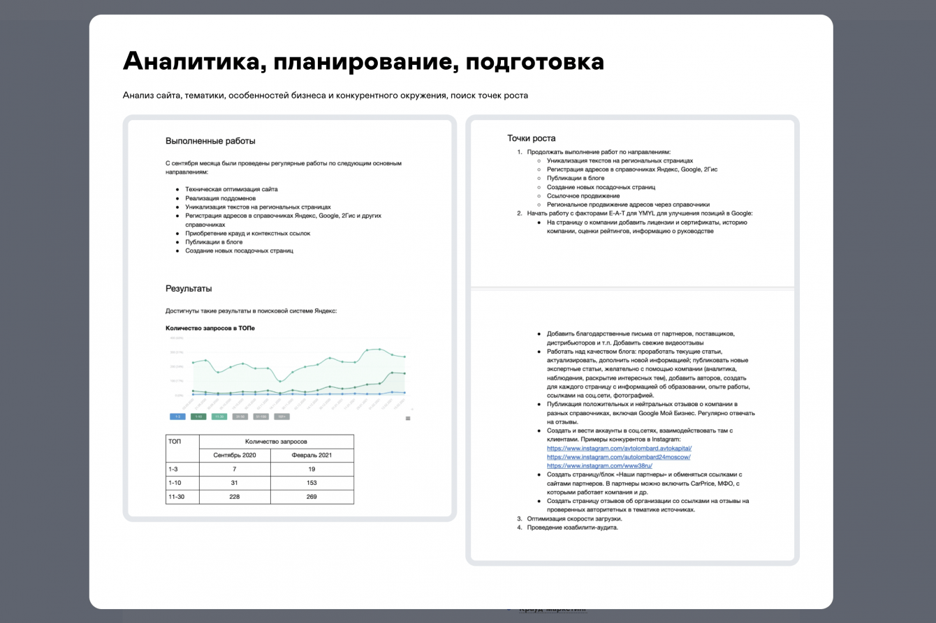 Провели аналитику по рынку и конкурентам. С особым вниманием изучили боли целевой аудитории. По результатам аналитики собрали структуру и контент сайта, которые отвечают на все вопросы потенциальных клиентов.