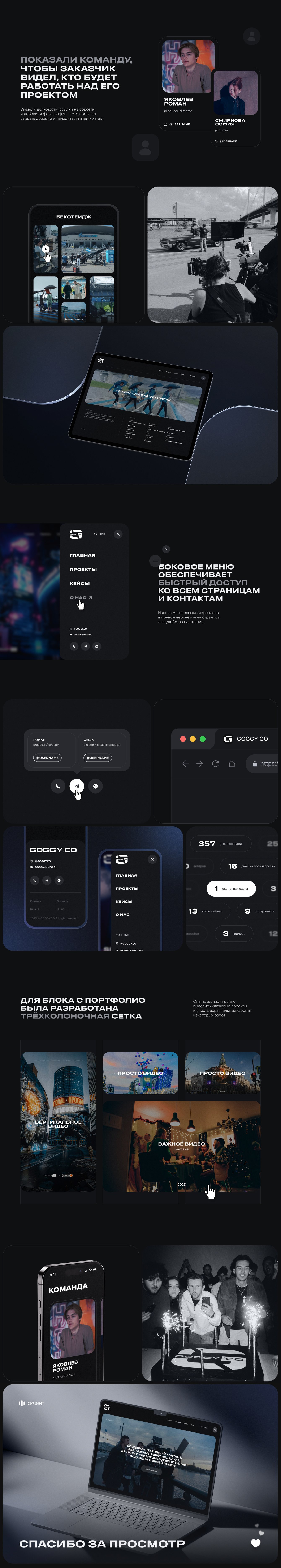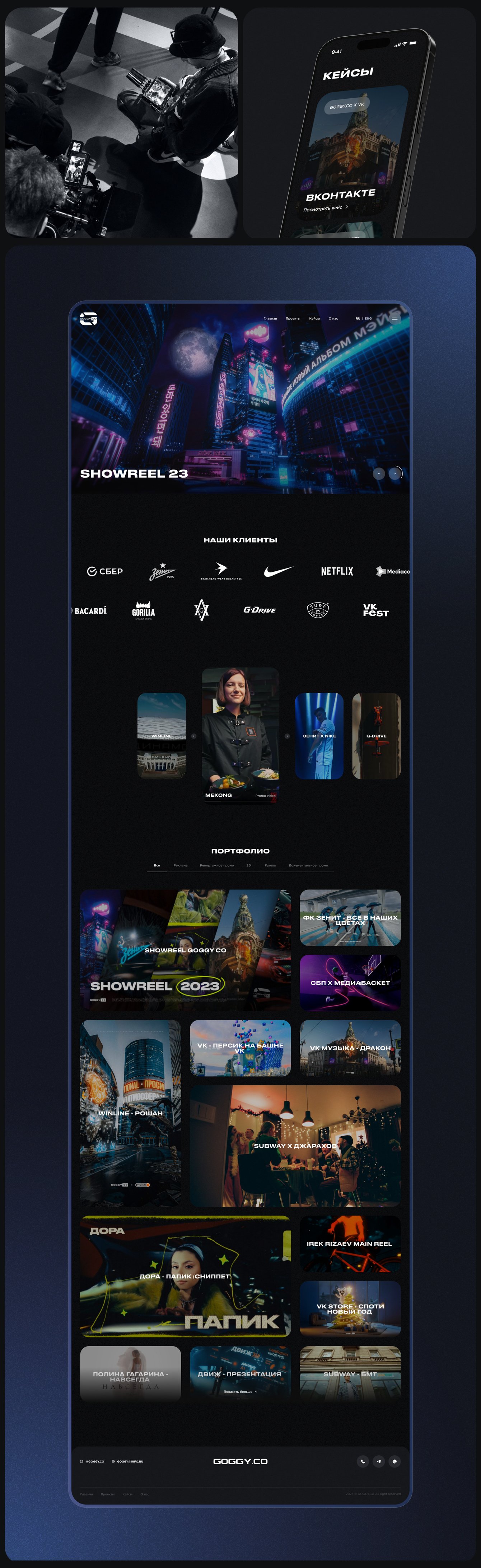 Акцент сделан на разнообразии видеоработ и крупных кейсах, созданных командой.
