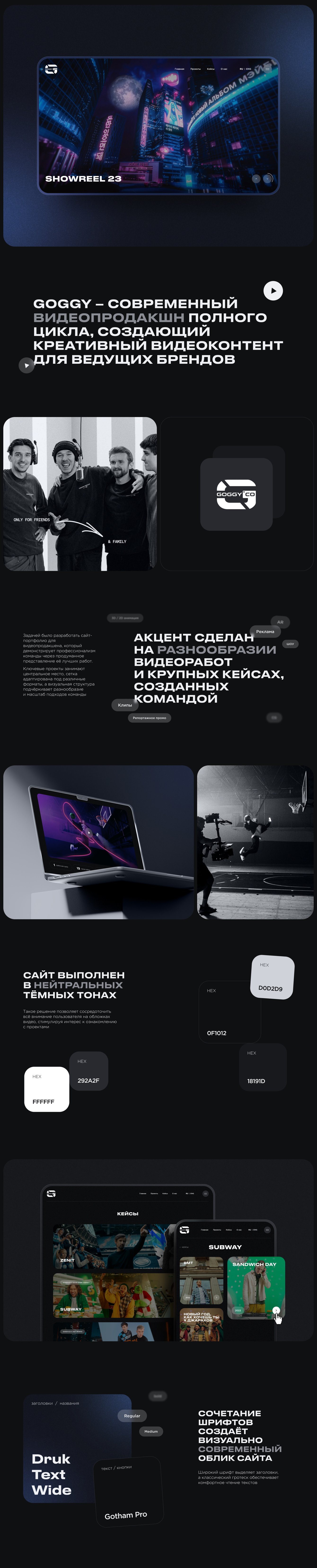 Разработать сайт-портфолио для видеопродакшена, который продемонстрирует профессионализм команды через продуманное представление её лучших работ.