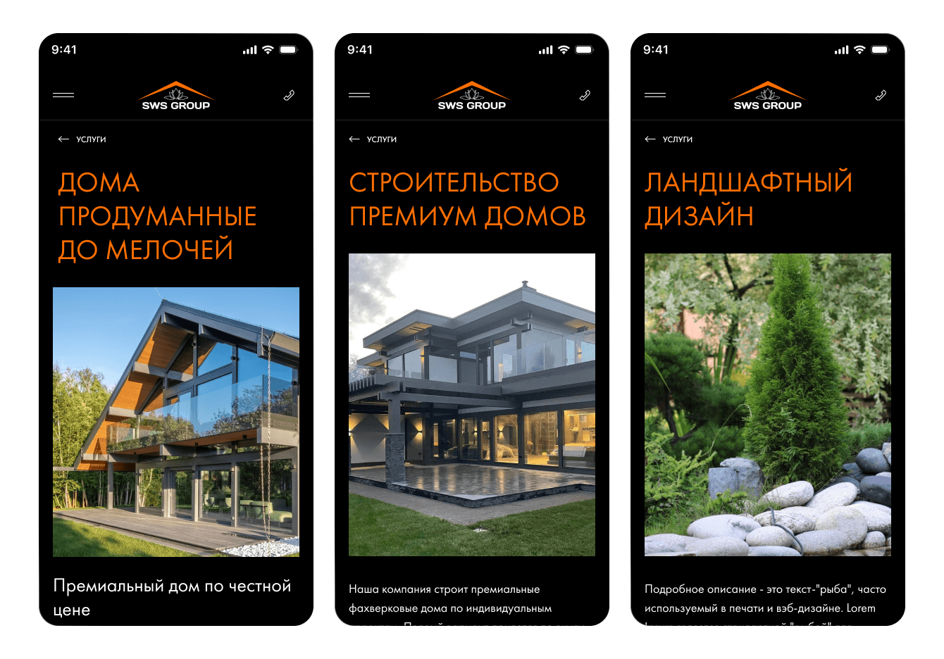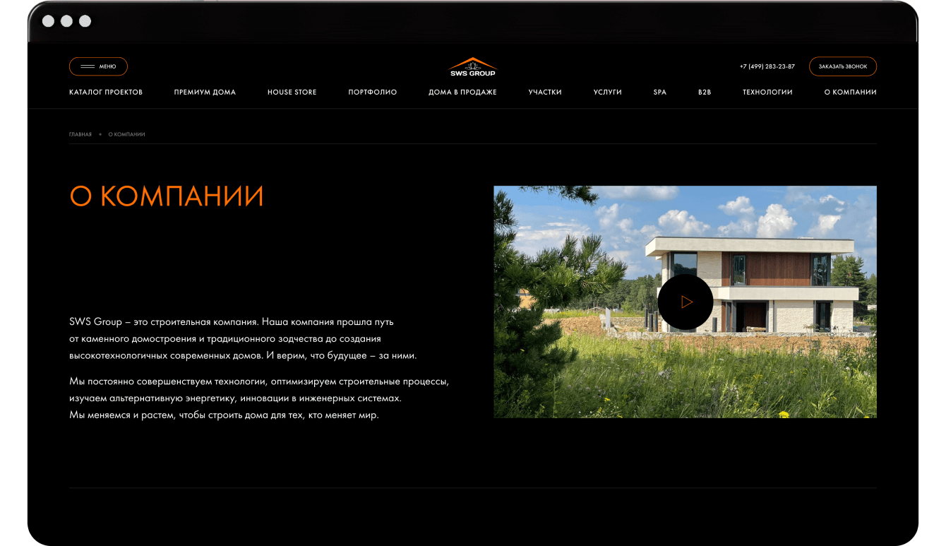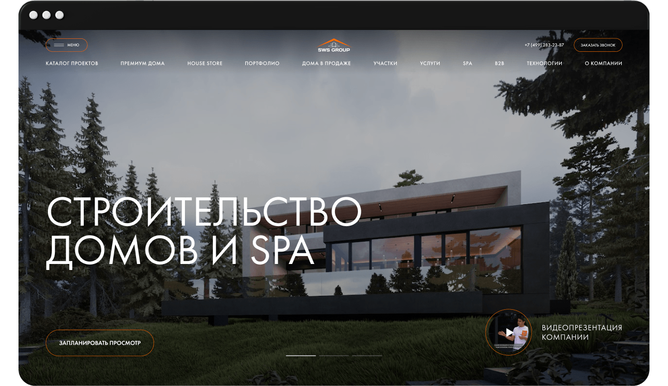 Современная платформа в элегантном и прогрессивном дизайне, которая отвечает всем требованиям пользователя по взаимодействию с компанией SWS Group, начиная с выбора локации и участка, до этапа детального обсуждения нюансов строительства с персональным менеджером. Визуал проекта идеально согласуется с философией Заказчика и основными ценностями - эстетика, качество, надежность, долговечность. Функционал подбора проекта максимально удобный и понятный для пользователя, все, что требуется для выбора будущего дома клиент сможет найти на сайте.