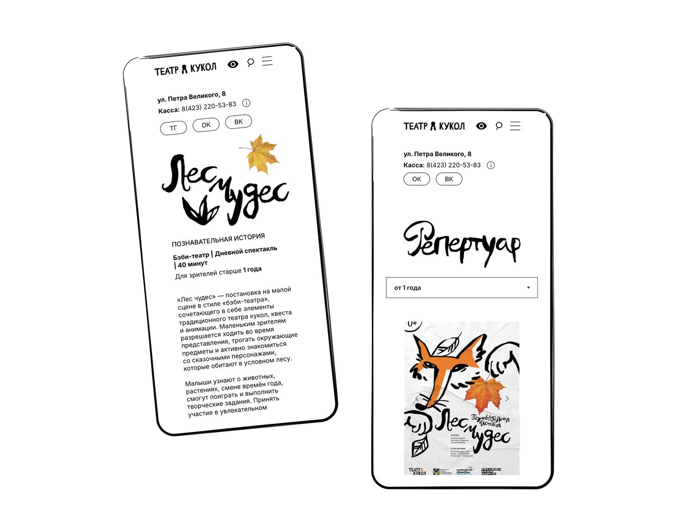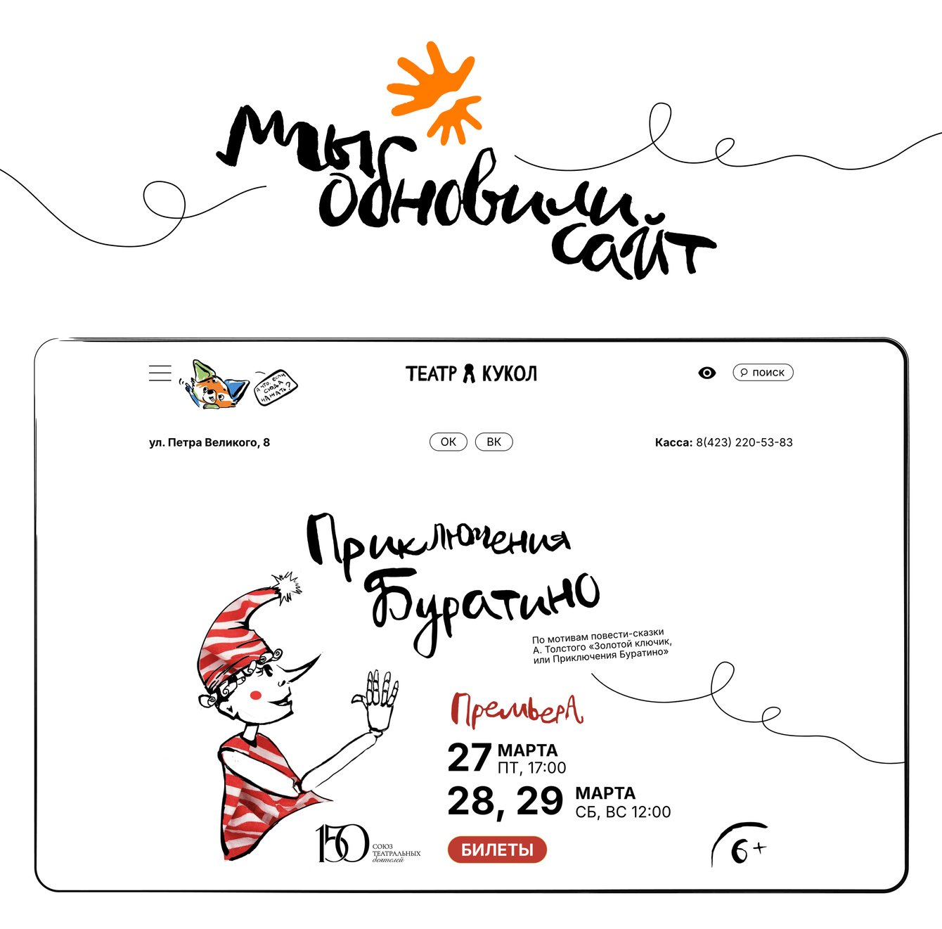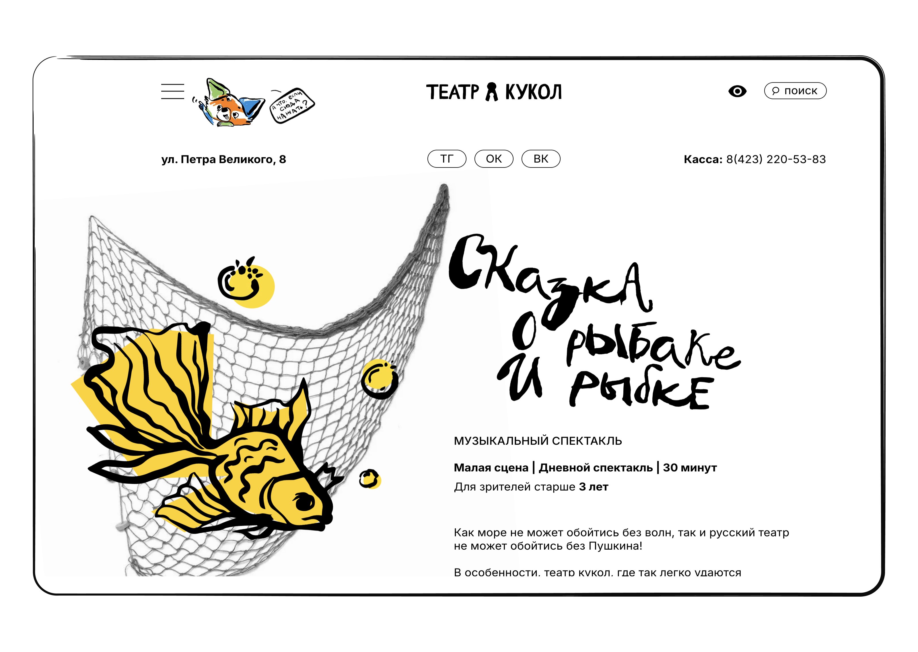 Театр пришёл с запросом не на типовое «государственное» решение, а на сайт с настроением — тёплый, немного озорной, понятный и родителям, и детям.