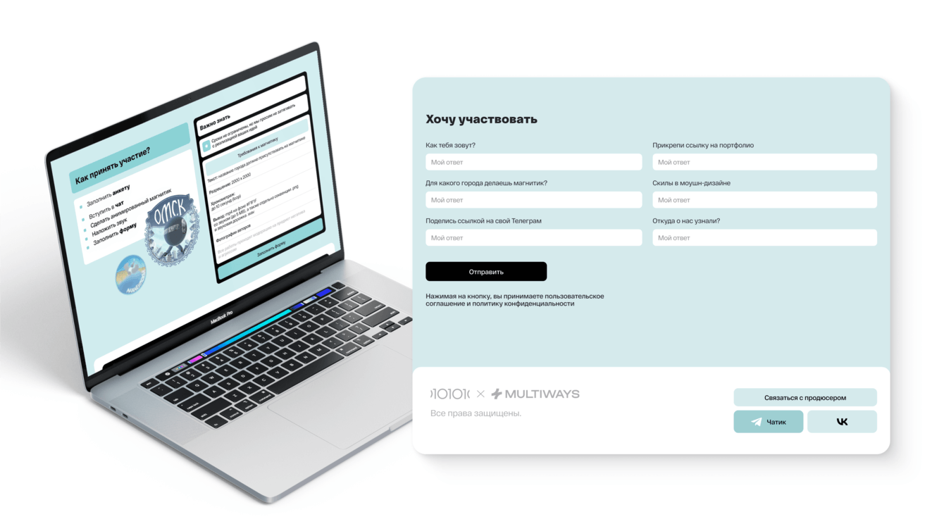 Создать платформу для иллюстраторов, моушен-дизайнеров и других художников, где они смогут проявить себя, объединяя творчество с локальной идентичностью городов. Проект должен вдохновить участников на поиск новых визуальных решений и одновременно привлечь внимание к уникальности российских городов.
