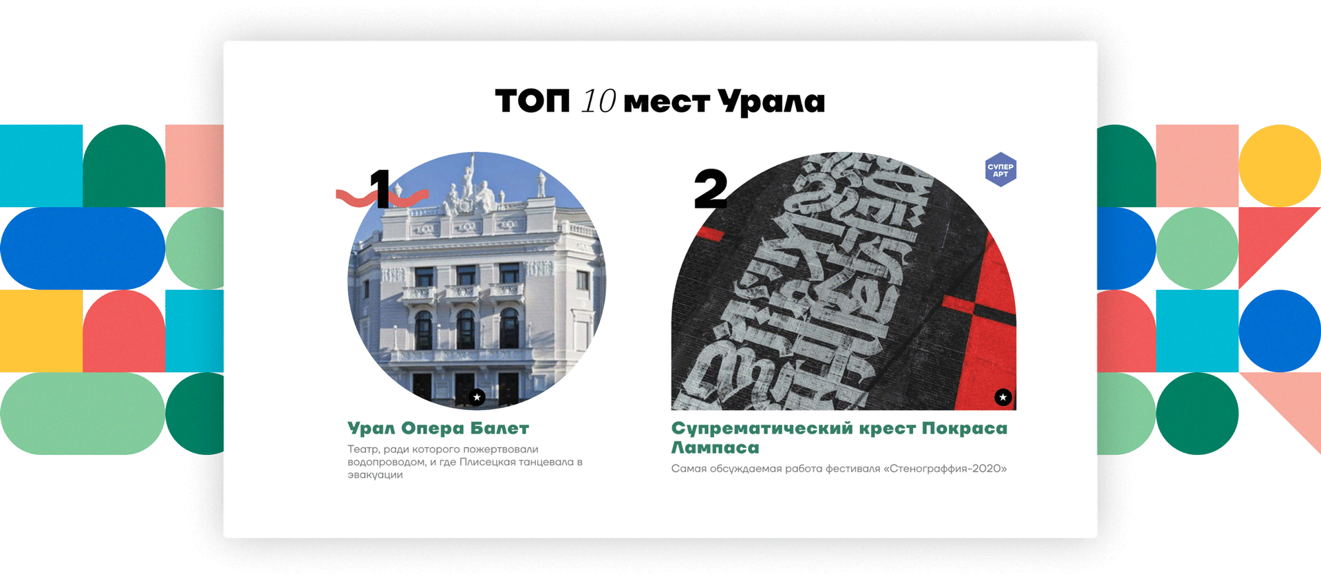 Мы продумали концепцию путеводителя, который объединил самые разные уральские достопримечательности — от памятников конструктивизма и дворянских усадеб до объектов уличного искусства и парков.