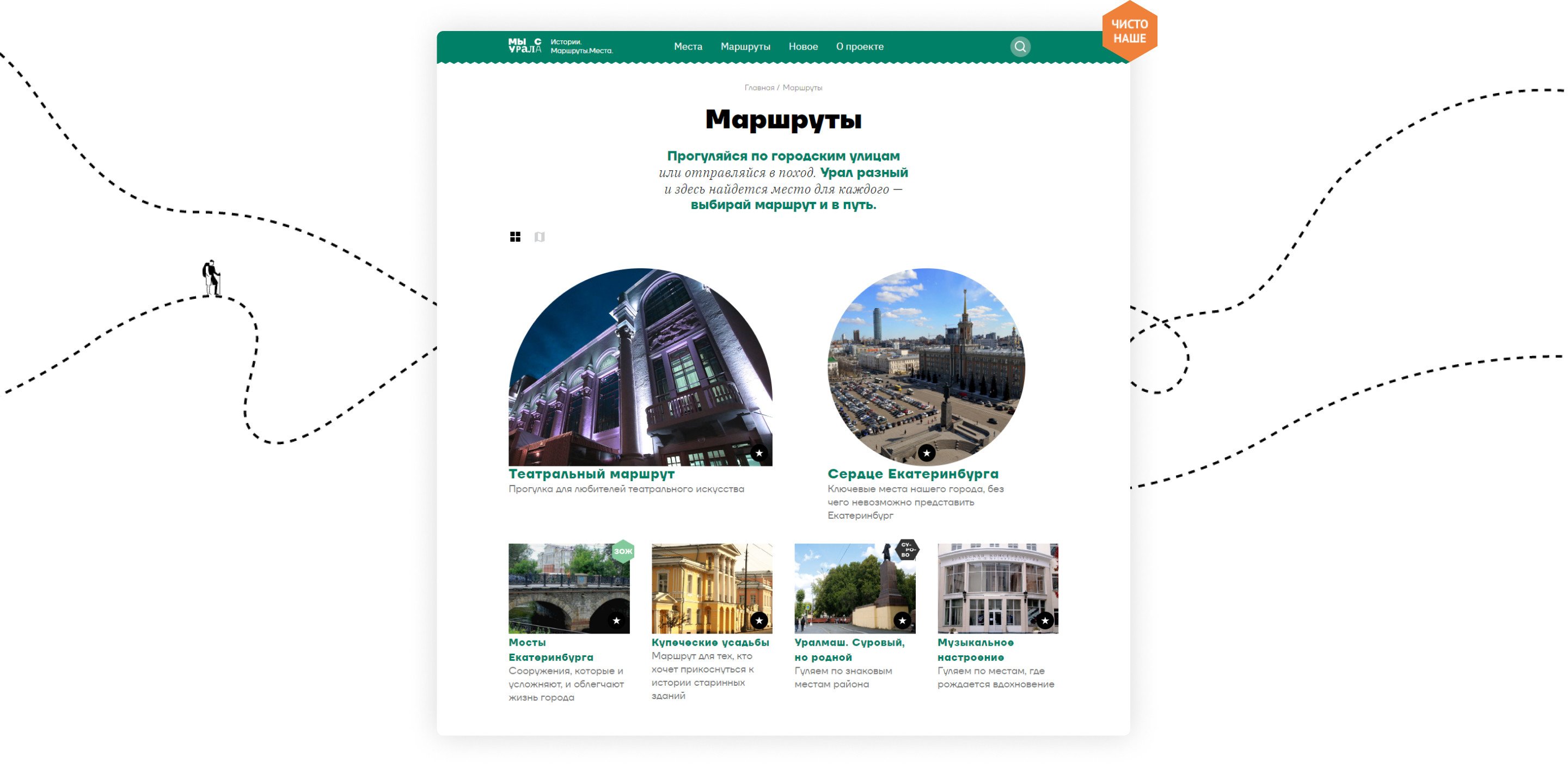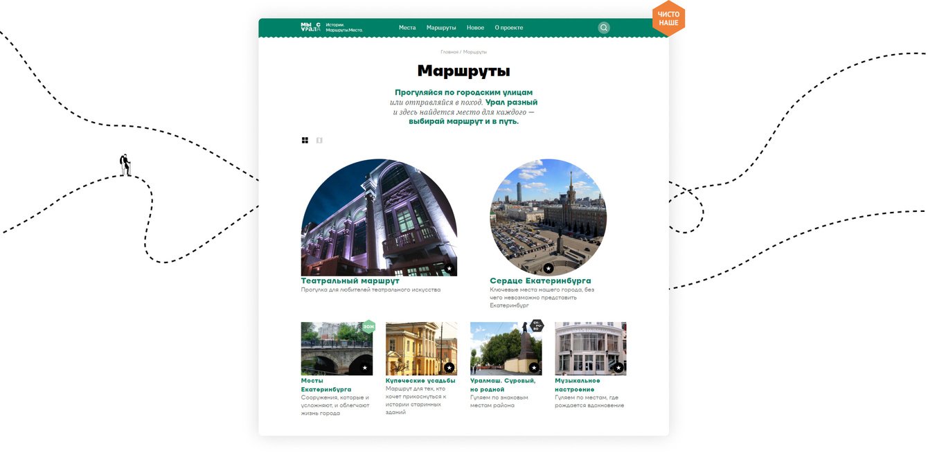 Мы сделали онлайн-путеводитель с уникальными авторскими маршрутами по Екатеринбургу и Свердловской области. Разработали сайт и мобильное приложение.