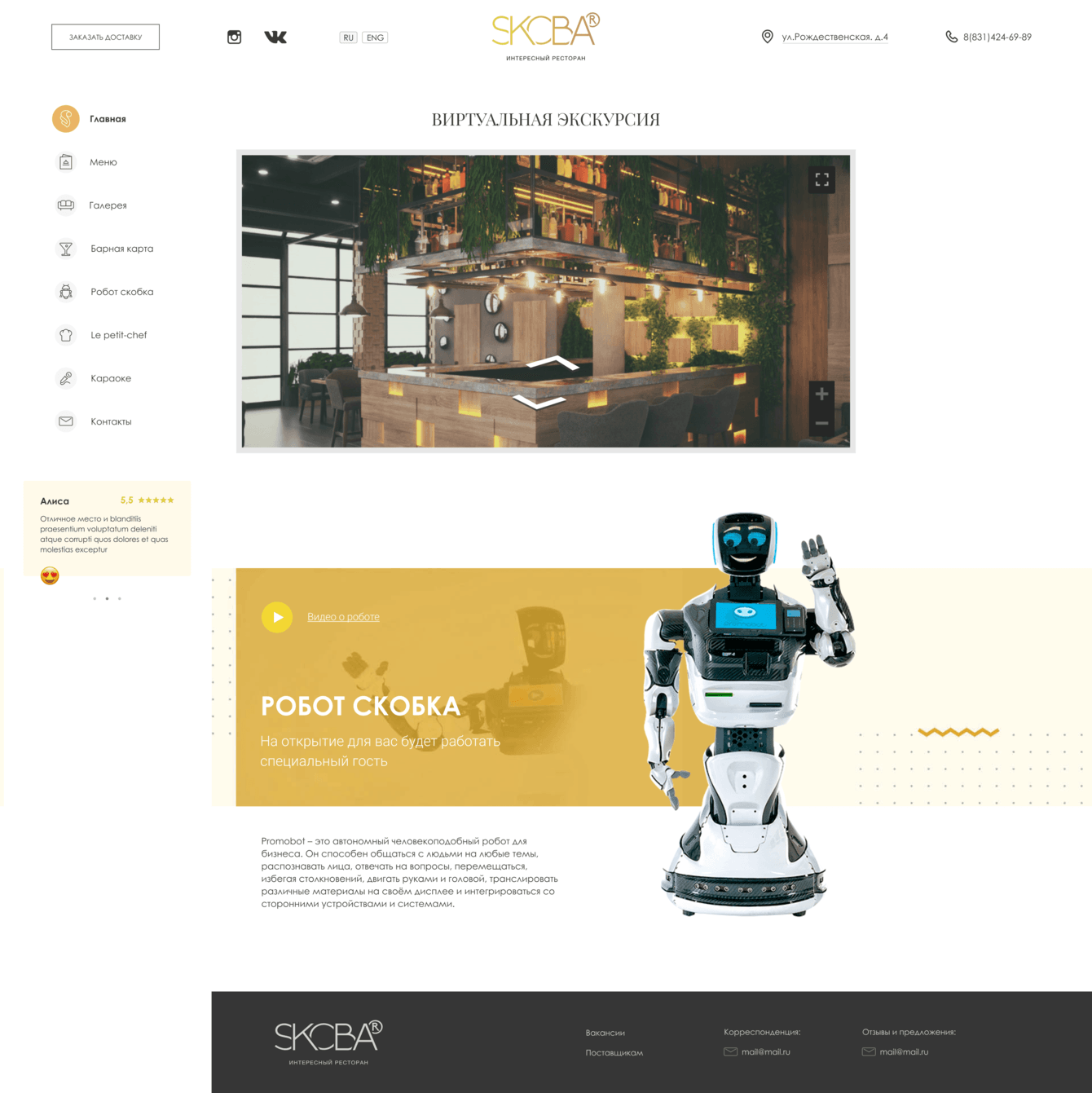 Разработка сайта ресторана в Нижнем Новгороде.
