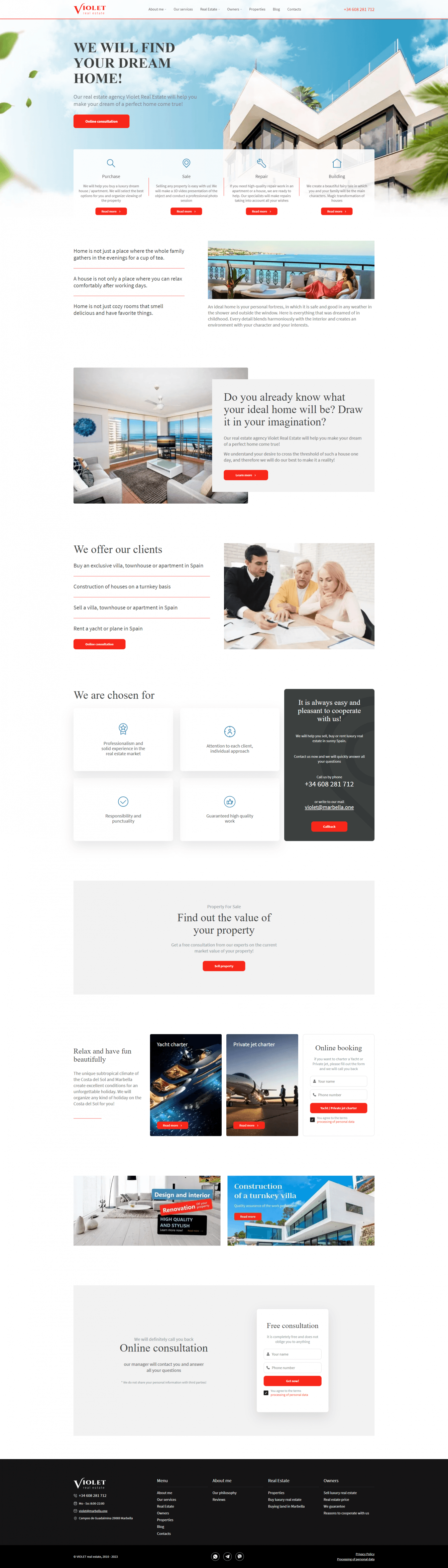 Клиент — агентство по продаже элитной недвижимости на побережье Испании — обратился к нам с запросом на разработку нового веб-сайта, который бы отражал престижность и уникальность предлагаемых объектов недвижимости.