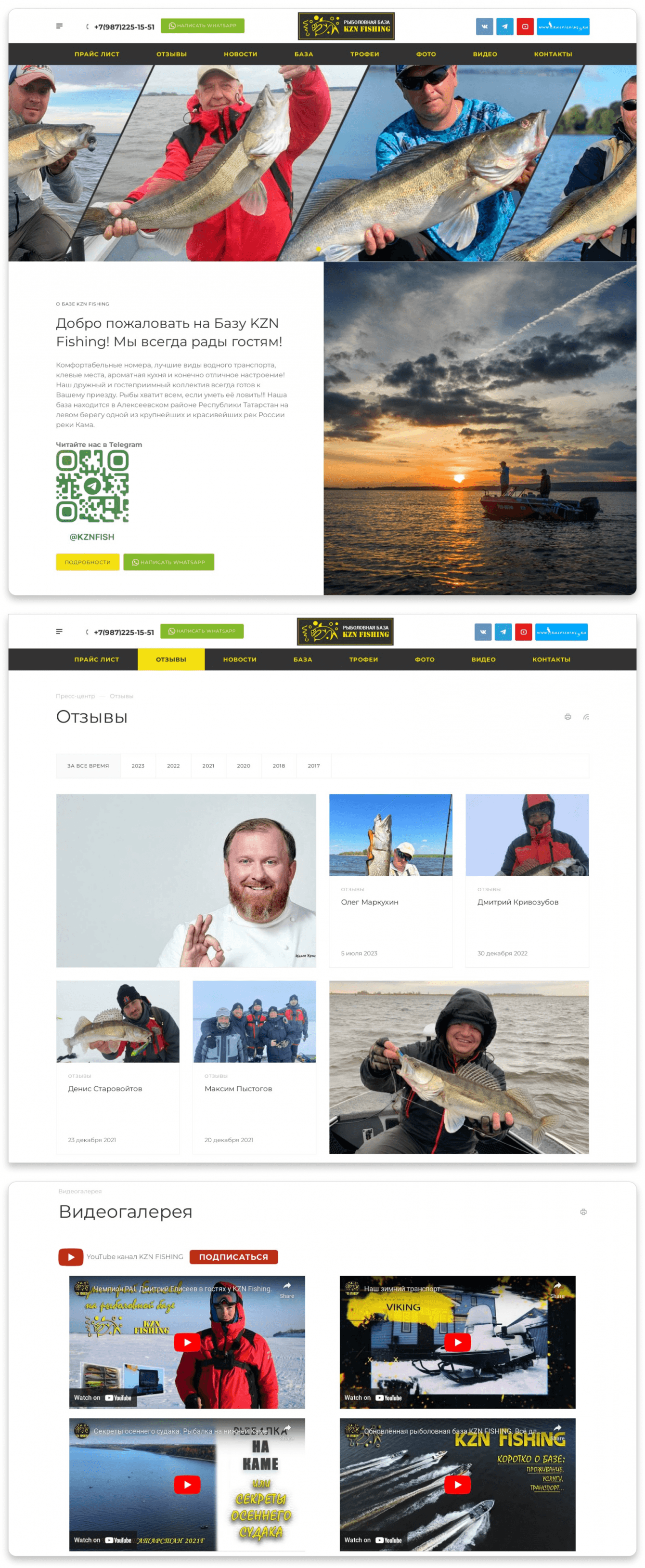 Создали два дополнительных раздела с фотогалереями. В одном представлены пойманные трофеи, во втором — интерьер базы, лодки и снегоходы.