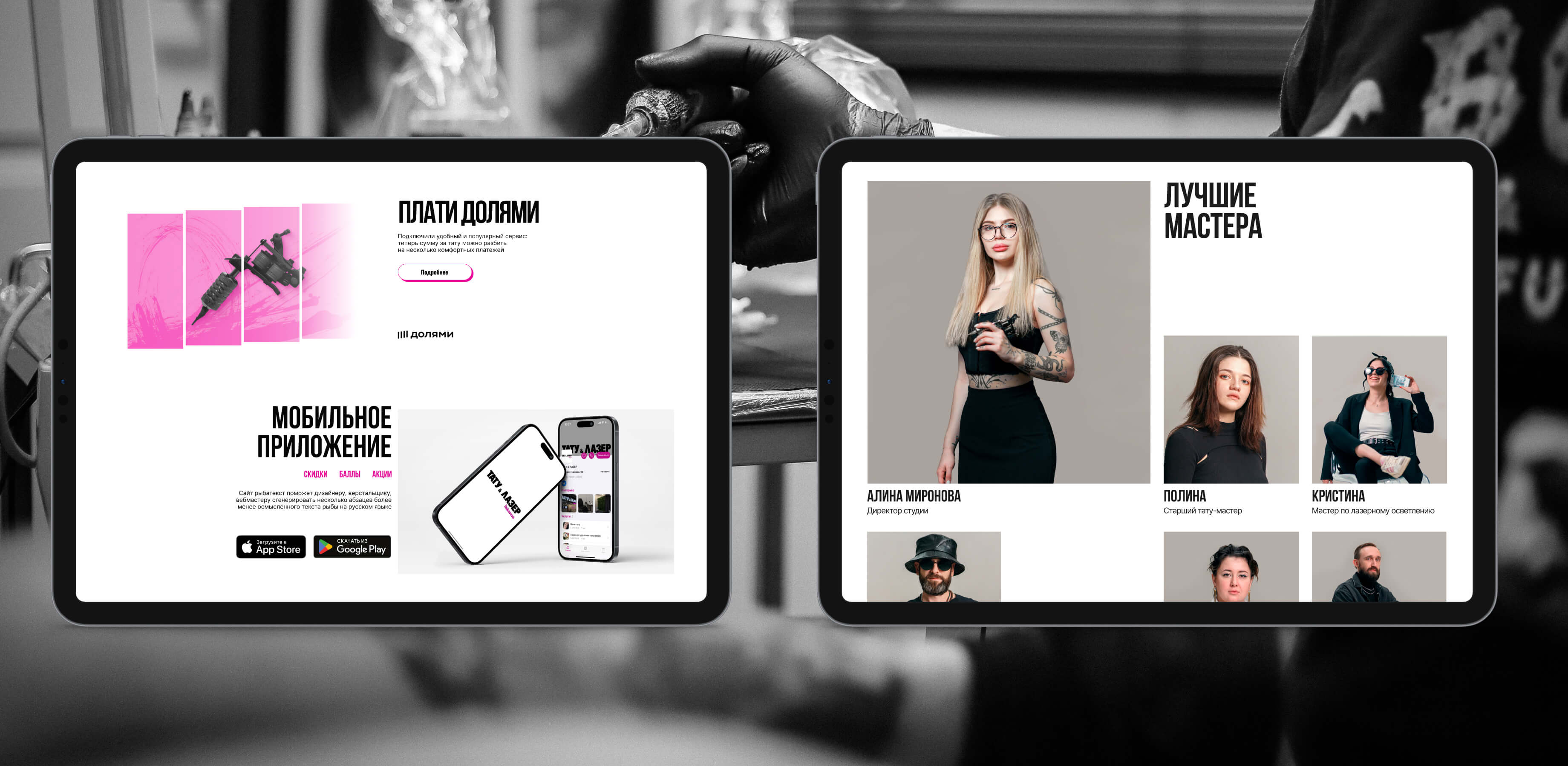 Сайт для «Тату и Лазер» отражает стиль и характер компании: дерзкий и яркий. За счет нестандартных решений в дизайне, сайт передает индивидуальность бренда и выделяется на фоне конкурентов.
