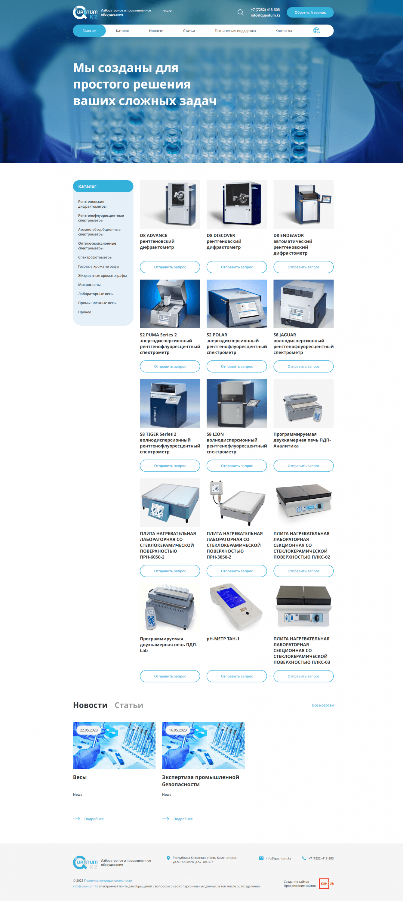 По итогу работ над проектом нашей командой был разработан удобный и информативный сайт-каталог, который позволил компании TOО “Quantum KZ" познакомить посетителей со своей деятельностью и ассортиментом, а также предоставить клиентам возможность совершать покупки онлайн.