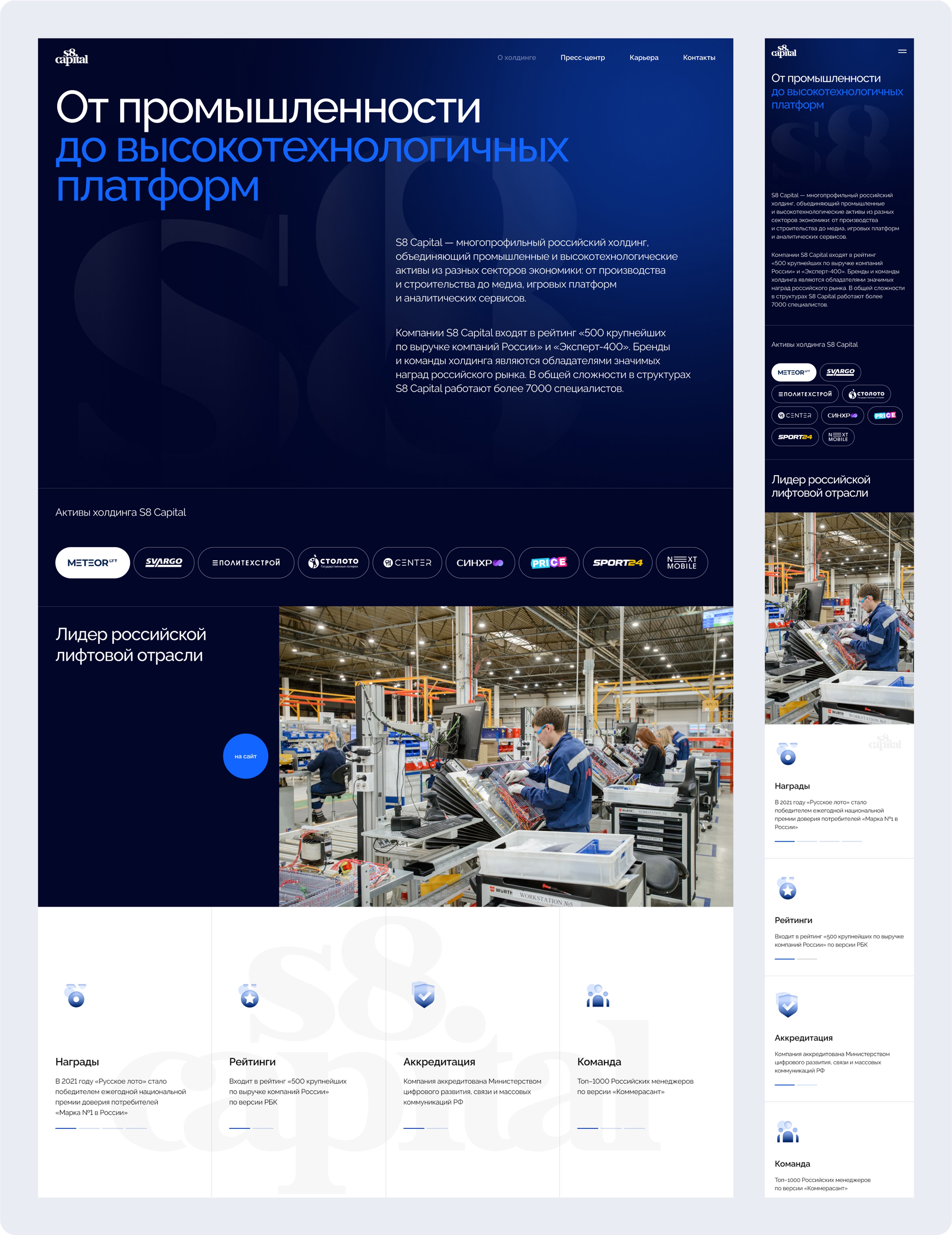 “S8 Capital” - многопрофильный российский холдинг, объединяющий промышленные и высокотехнологические активы из разных секторов экономики: от производства и строительства до медиа, игровых платформ и аналитических сервисов.