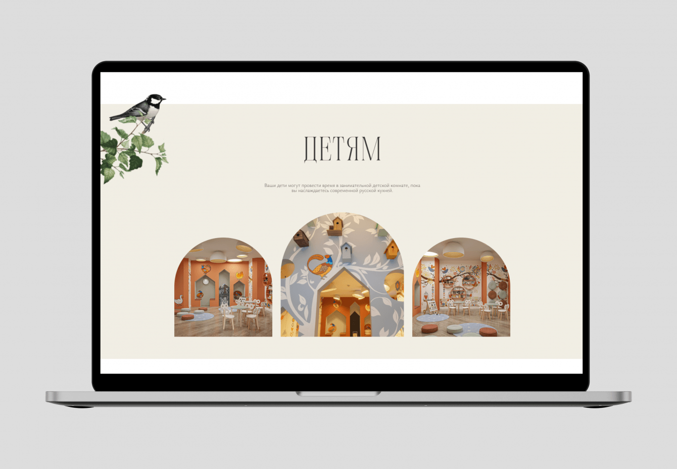 Сайт для семейного кафе «Птичий Двор» решили делать на Тильде, что позволило быстро и эффективно реализовать все идеи. Мы разработали анимации веток, которые плавно качаются, создавая живую атмосферу. Также при помощи кода добавили звуки пения птиц, что делает взаимодействие с сайтом более увлекательным и атмосферным: посетители могут погрузиться в уникальную обстановку уже на этапе знакомства с кафе.