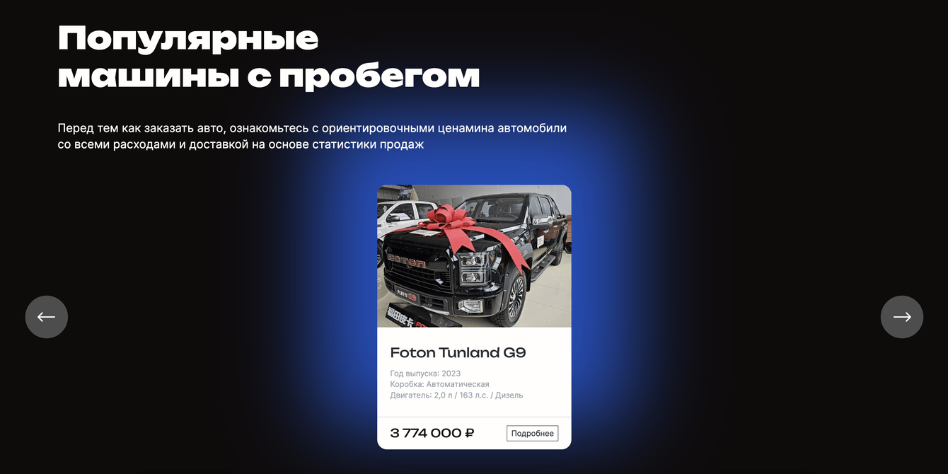 Доступно представлено: подбор, доставка, страхование и регистрация авто;