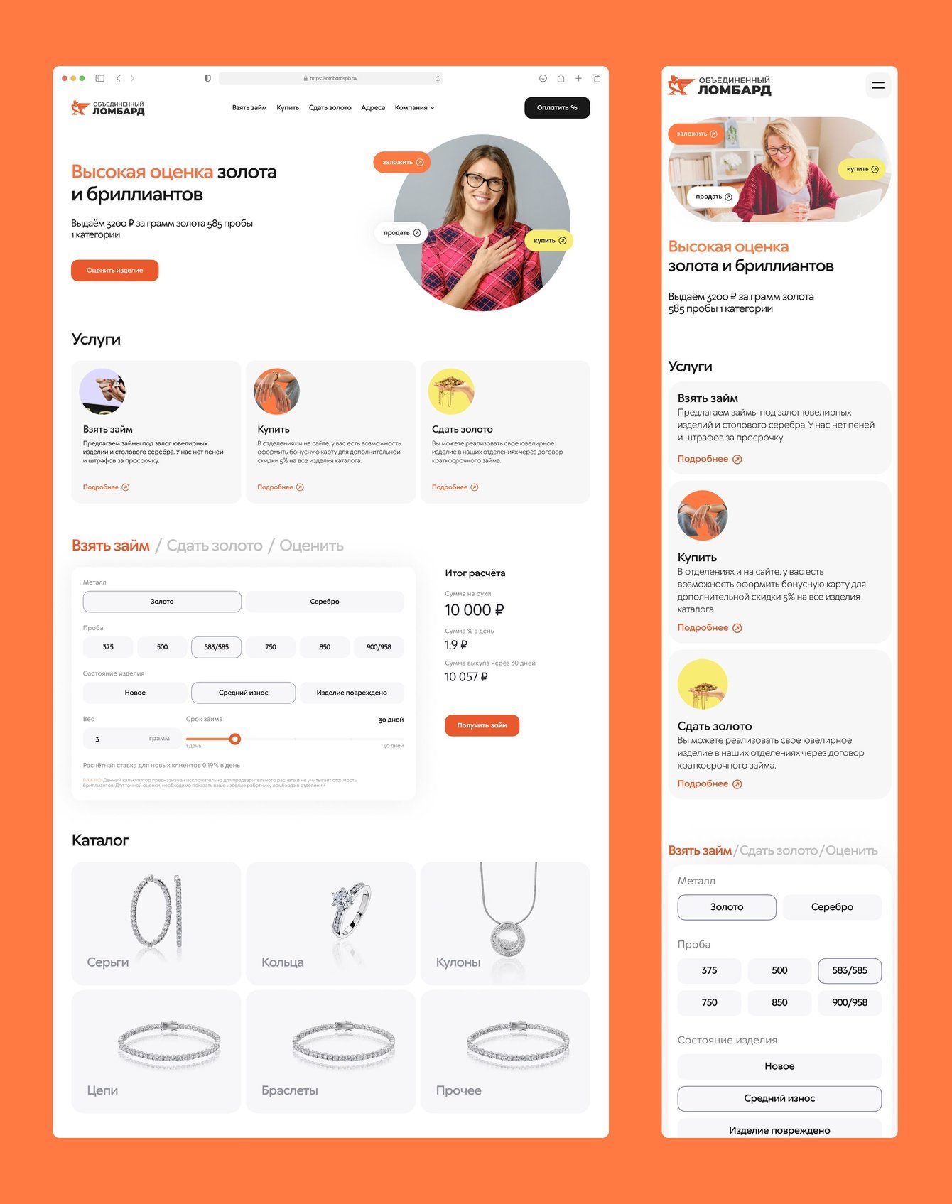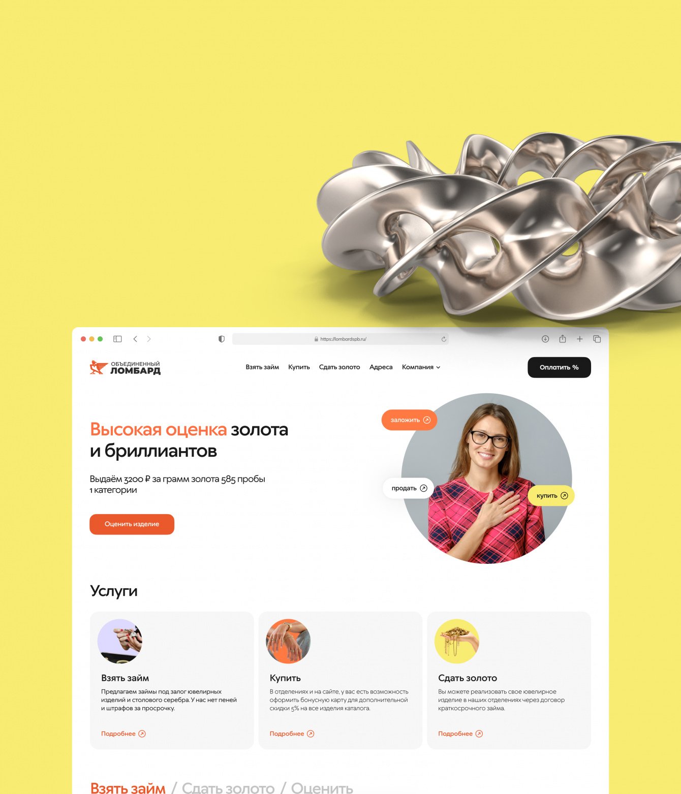 – спроектировать удобный для пользователей и визуально привлекательный сайт сети ломбардов.