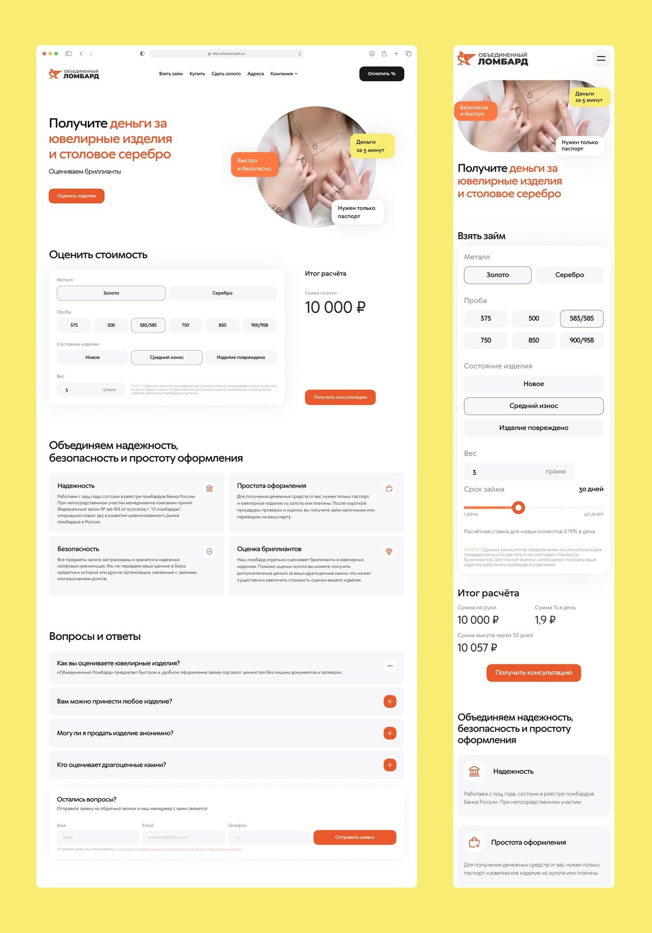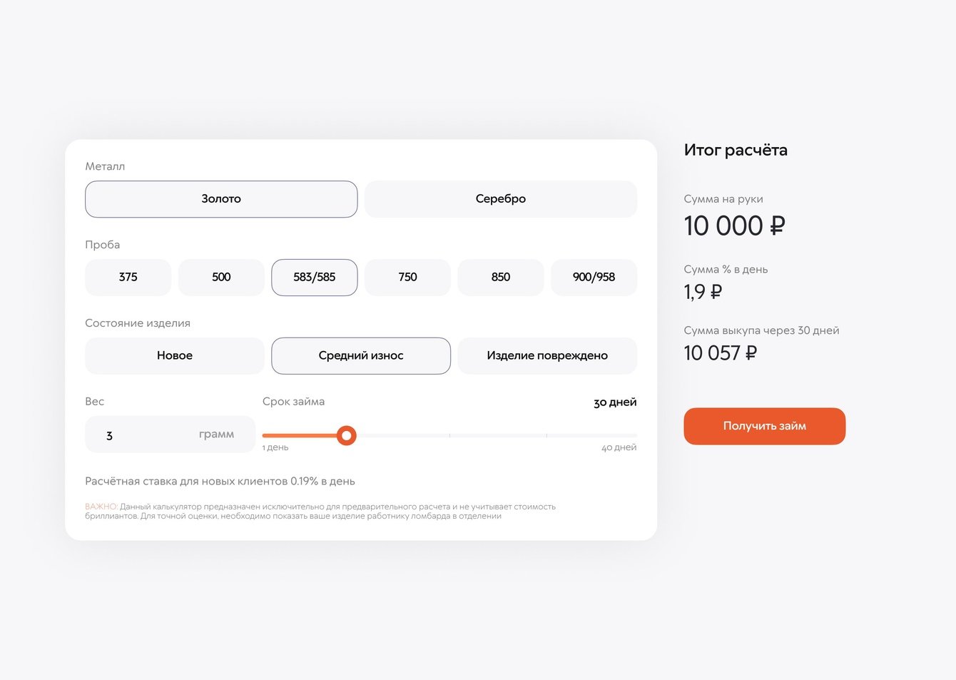 Разработать дизайн интерфейса, изменив восприятие пользователей о ломбардах и представив компанию на рынке, как современное, удобное и надежное место для получения финансовых услуг